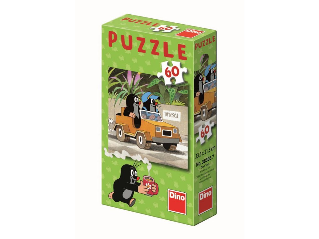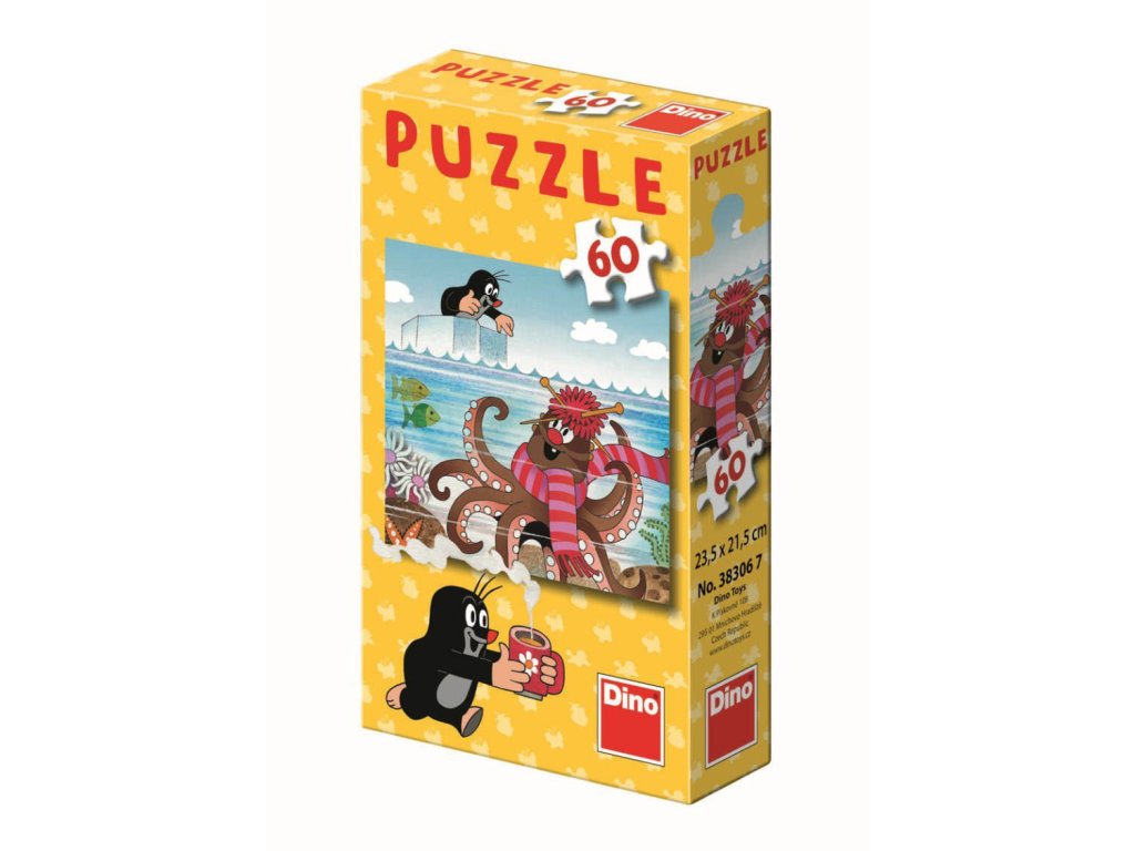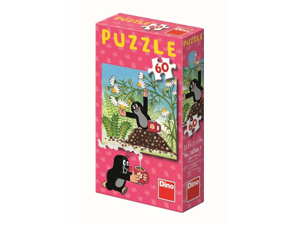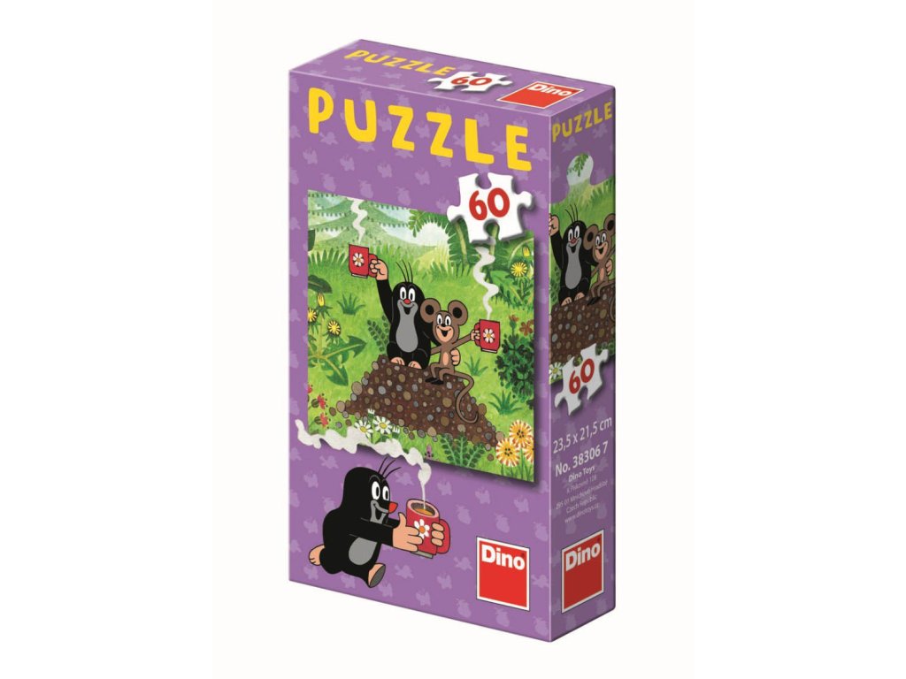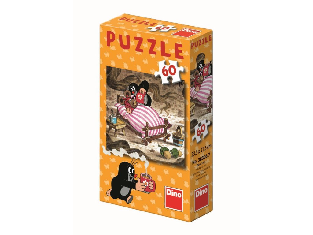 Puzzle s motivem Jak krtek uzdravil myšku obsahující 60 dílků. Rozměry složeného obrázku jsou 23,5 x 21,5 cm. Vhodné pro děti od 5 let.