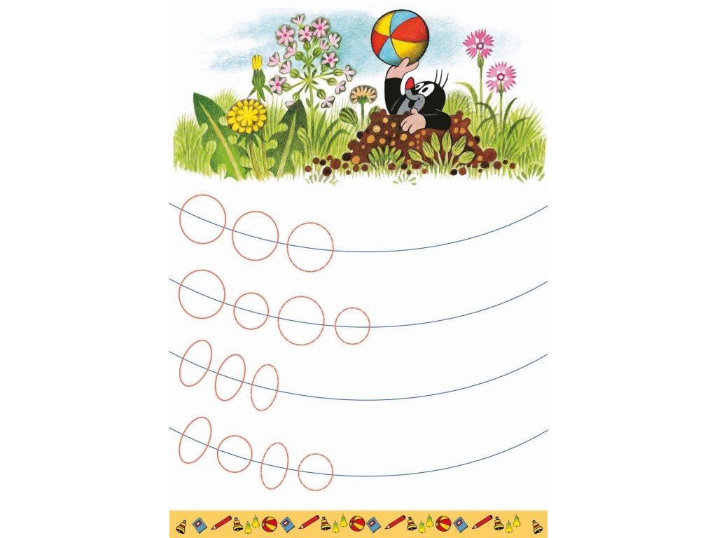 Tento sešit 12 stran včetně obálky. Sešit slouží k opakovanému nácviku základních tvarů, čar, obloučků, jednoduchých uvolňovacích cviků, jednotažek, tedy příprava dítěte na výuku psaní. Lesklý povrch z lícové i rubové strany zaručuje opakovatelnost spolu s popisovačem s plstěným hrotem, který je nedílnou součástí výrobku. Povrch a přiložený popisovač zajišťují opakovatelnost psaní bez stresu z neúspěchu. Vše vloženo v transparentním sáčku.