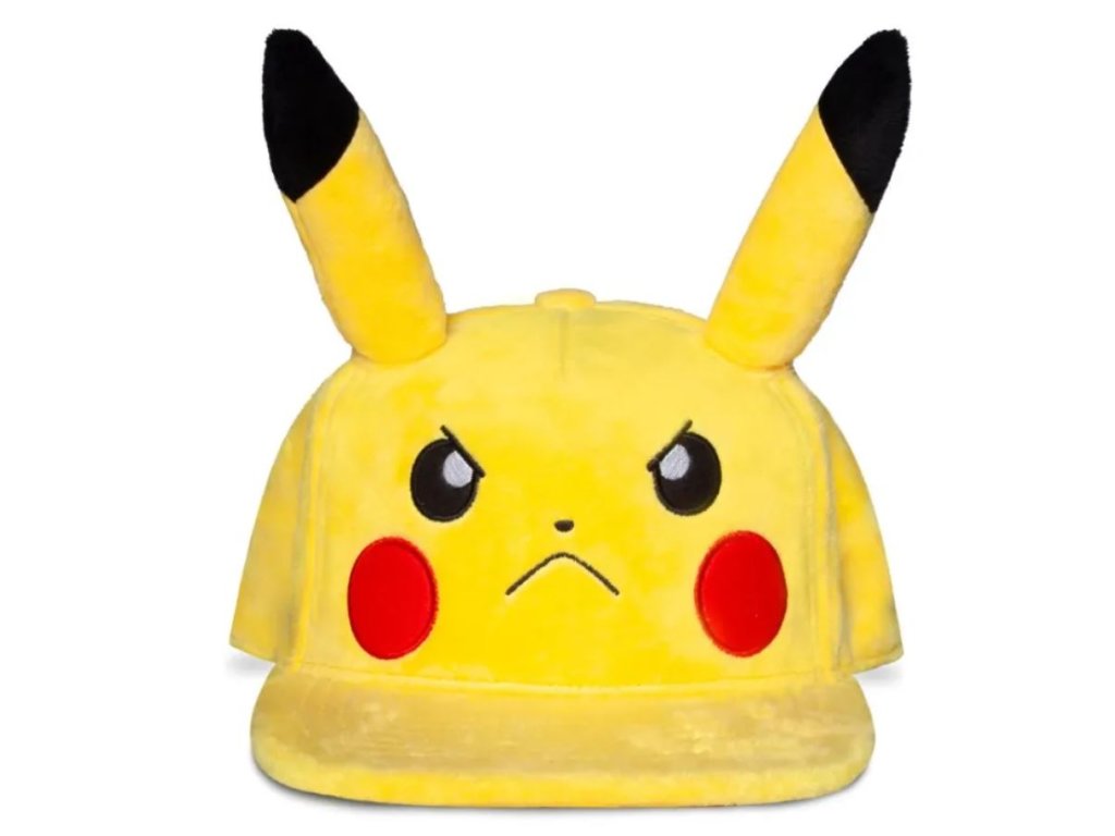 Žlutá snapback kšiltovka vyvedená jako naštvaný pokémon Pikachu s ušima. Tahle nastavitelná snapback kšiltovka s vyšívanými detaily, které zachycují Pikachuův naštvaný výraz a 3D nášivkou na uši pro větší hloubku. Kšiltovka zajišťuje pohodlí. S Pikachuovou šílenou tváří je tento doplněk odvážným prohlášením, kombinuje intenzitu a šarm v jednom. Přijměte sílu divokého Pikachu a vynikněte s tímto jedinečným snapbackem, který ukazuje vaši lásku k Pokémonům.