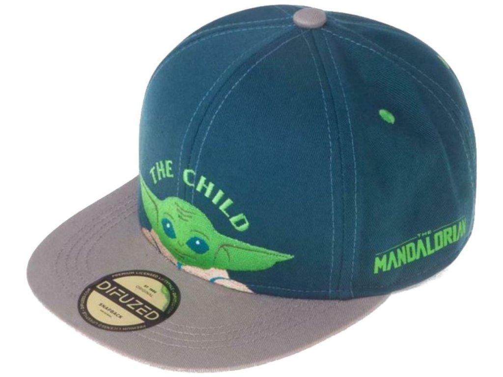 Modrá baseballová rap čepice s motivem Baby Yody a nápisem The Child.