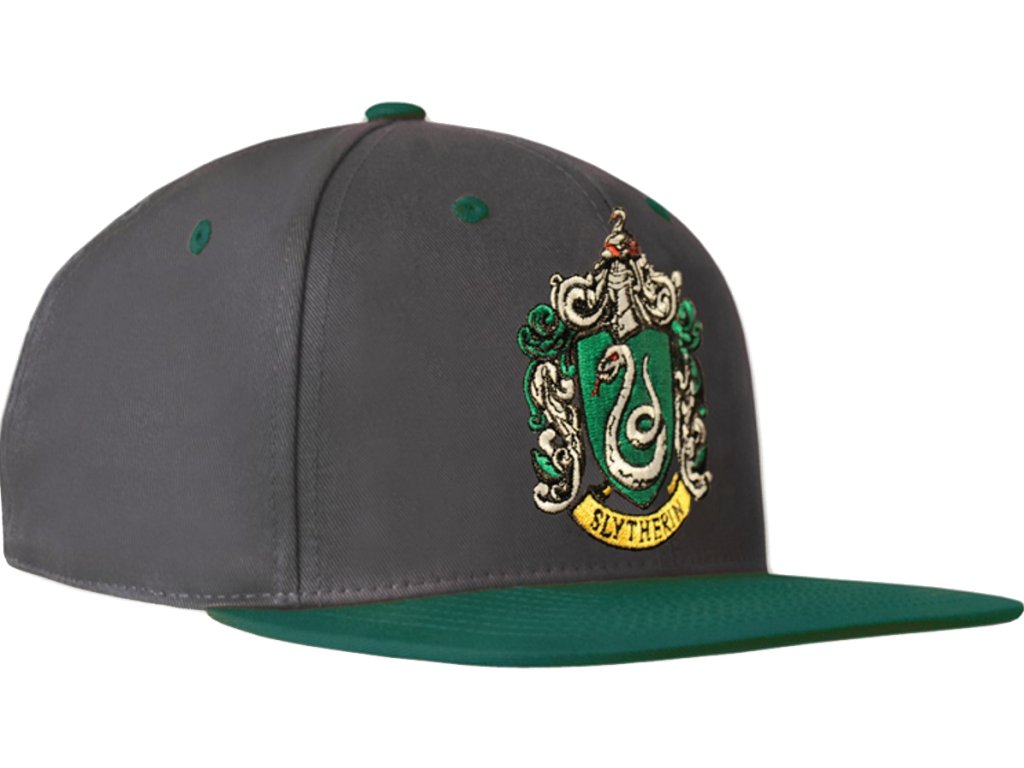 Atraktivní šedá kšiltovka s rovným zeleným kšiltem a znakem školní koleje Slytherin (Zmijozel). Nastavitelná velikost polohovacím řemínkem v zátylku.