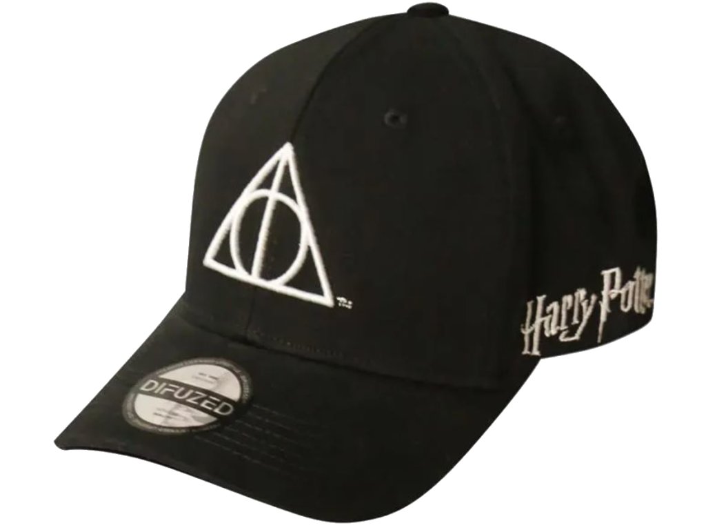 Černá basseballová kšiltovka inspirovaná znakem Relikvie smrti ze série Harry Potter.