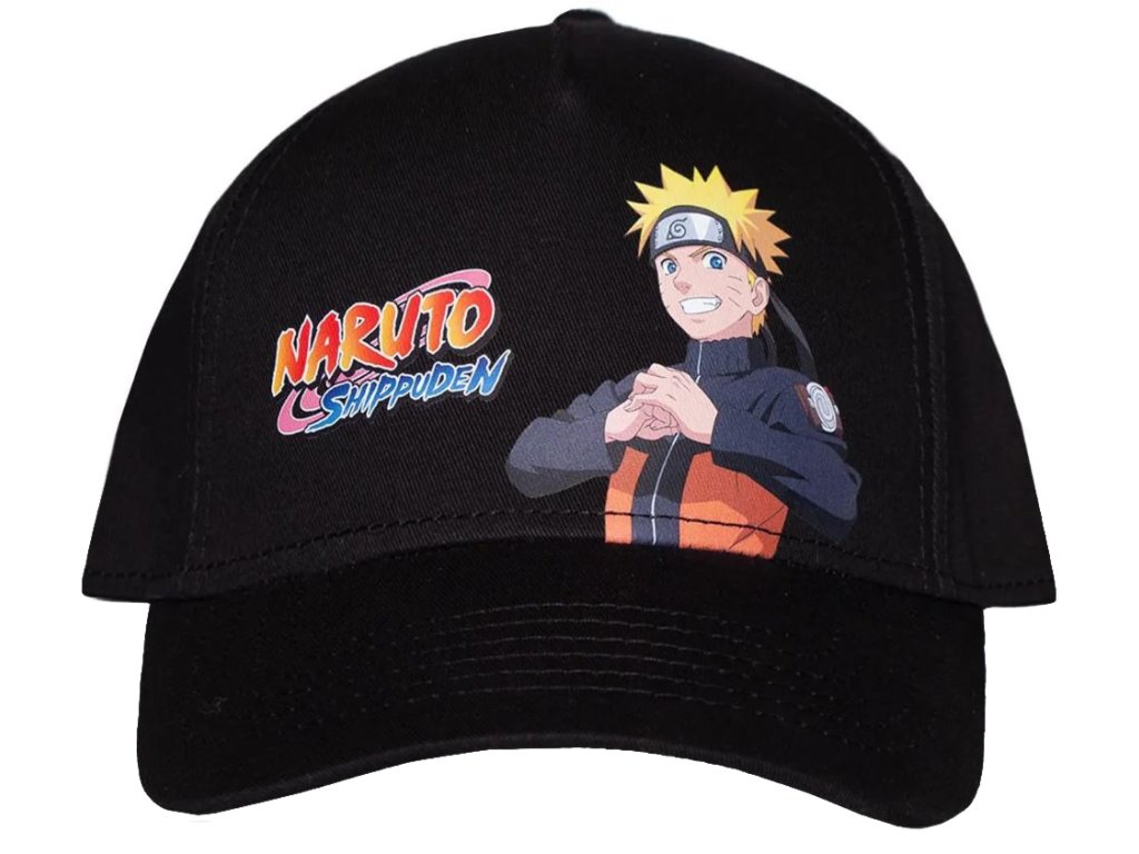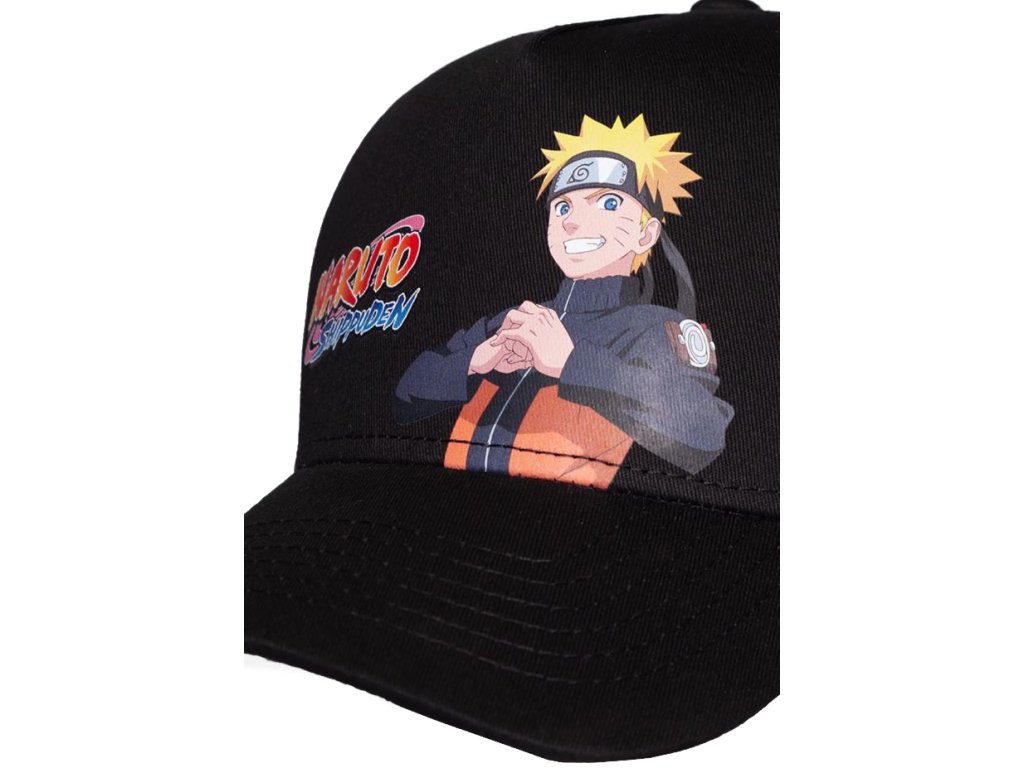 Černá baseballová kšiltovka vyvedená v motivu mangy Naruto Shippuden a hlavní postavy Naruto Uzumaki. Vzadu je čepice otevřená a nastavitelná pro optimální pohodlí a nošení.