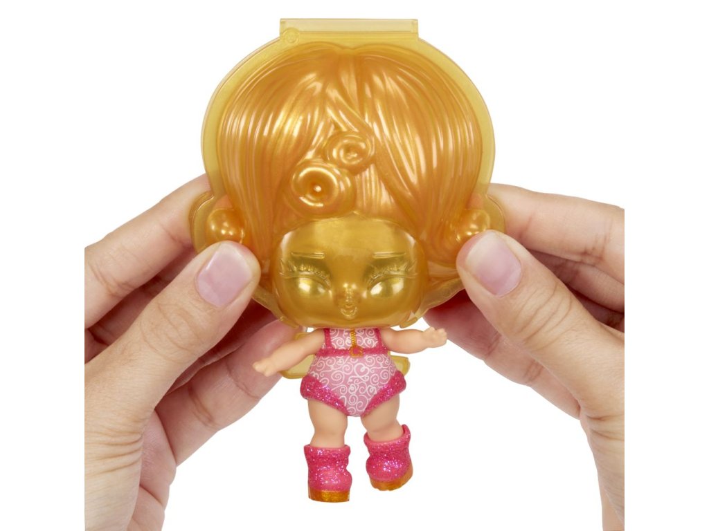 Představujeme úplně nové panenky s magickým pískem. Každá panenka má paruku vyrobenou z magického písku, který musíš rozmáčknout, abys v něm našla třpytivé překvapení. Magický písek můžeš použít znovu a panence třeba vyrobit jiný účes. Písek je jemný a dobře drží, když se pevně zavře do obalu. Každá z 9 panenek má jiný účes a jinak barevný písek.