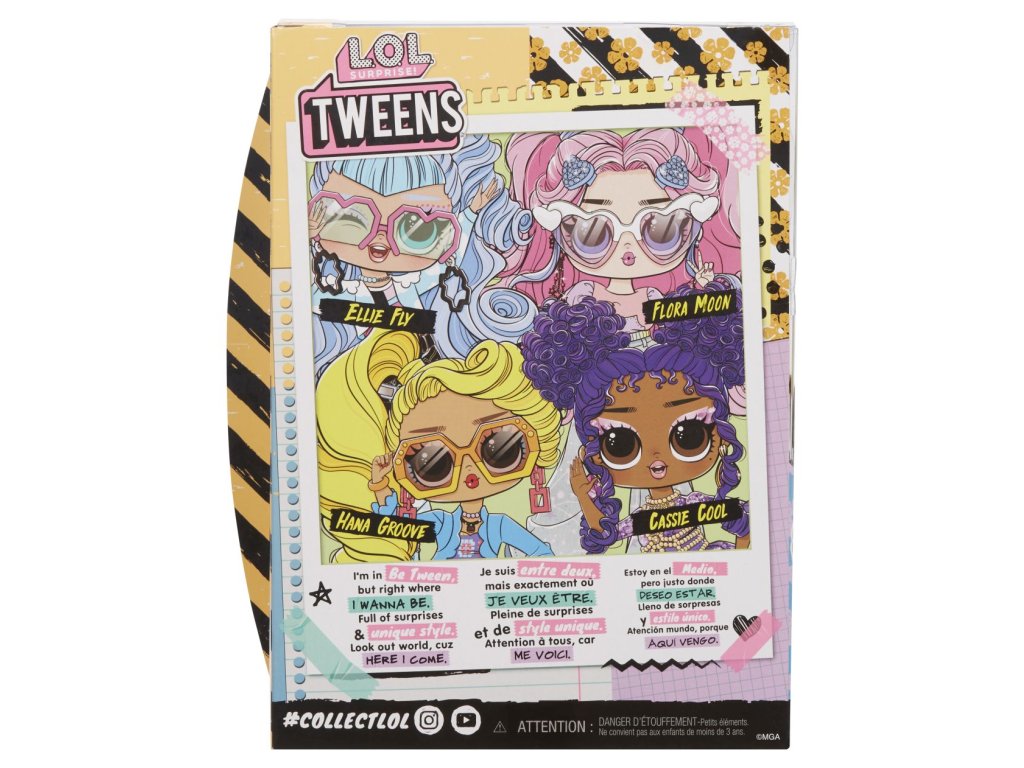 Představujeme 4 nové L.O.L. Surprise! Tweens rošťácké panenky. Tweens přicházejí s 10 překvapeními včetně jedinečných oblečků a roztomilých doplňků. Získej všechny 4 nejlepší kamarádky!Obsah balení:• 1 panenka Tweens s pohyblivými klouby• 10 různých doplňků včetně nádherných oblečků, bot, kartáče na vlasy, časopisu a stojanu pro panenkyVelikost panenky Tweens: cca 16,5 cm.