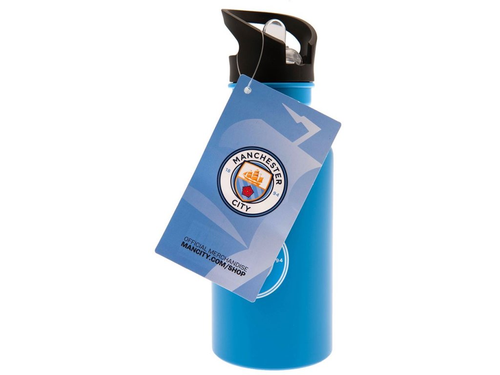 Oficiální produkt - láhev na pití z katalogu zboží s fotografiemi, grafikou a licencí slavného profesionálního fotbalového klubu Manchester City FC.