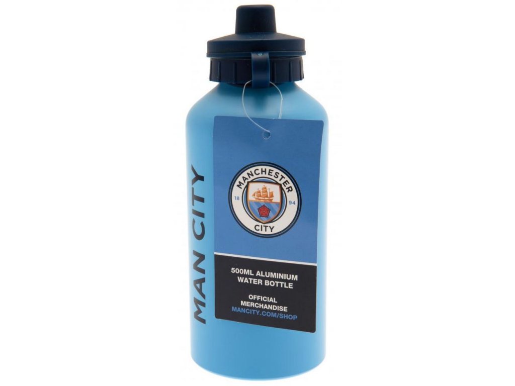 Oficiální produkt - láhev na pití z katalogu zboží s fotografiemi, grafikou a licencí slavného profesionálního fotbalového klubu manchester City FC.