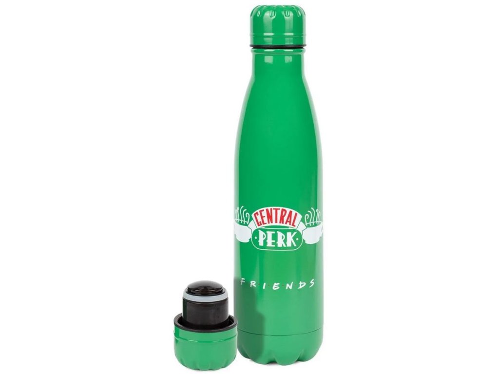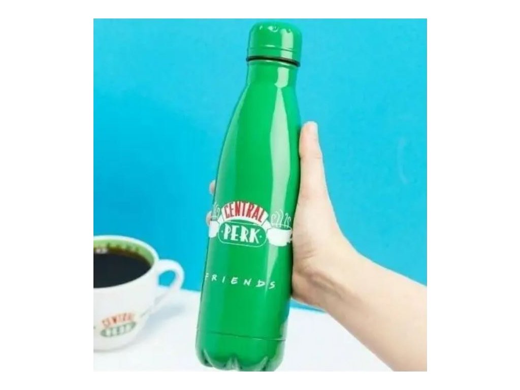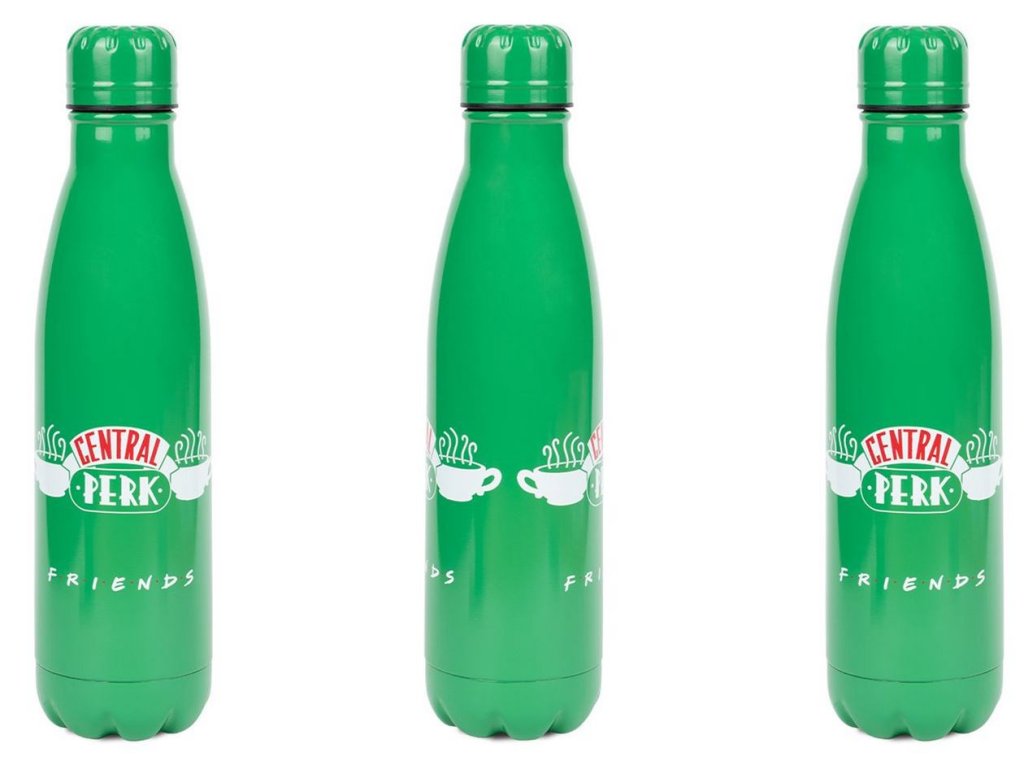 Oficiální láhev a doplňkové zboží z katalogu produktů se znakem a grafikou z populárního amerického seriálu Přátelé.
