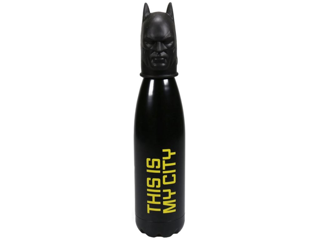 Láhev na pití s motivem hrdiny Batman. Součásti je nápis This Is My City.