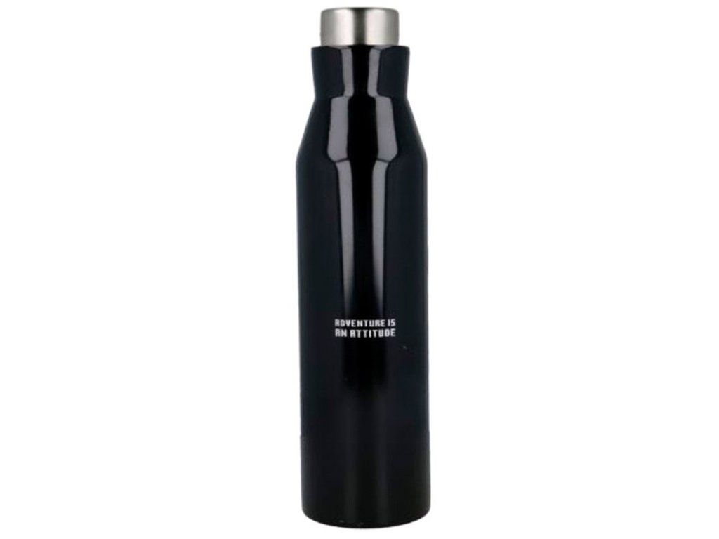 Černá nerezová láhev na pití inspirovaná logem počítačové hry Minecraft.