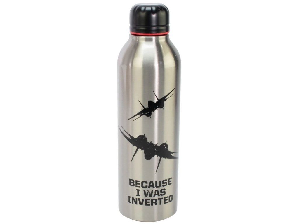Nerezová láhev na pití s grafikou populární filmové série Top Gun. Prémiově tvarovaná ocelová jednostěnná ocelová láhev na vodu o objemu