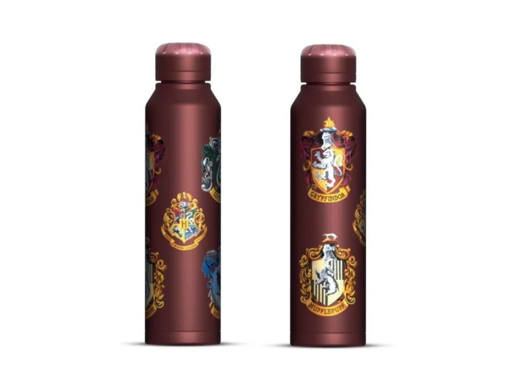 Nerezová láhev na pití vyvedená s grafikou barevného erbu školy čar a kouzel v Bradavicích. Láhev je vhodná pro každého menšího i většího fanouška Harryho Pottera.