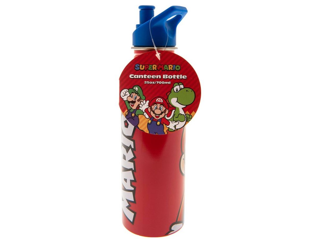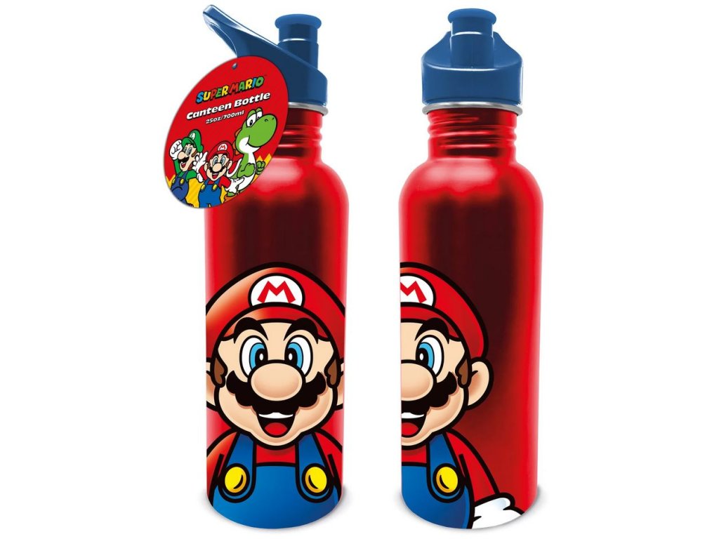Oficiální produkt: nerezová outdoor láhev na pití s pítkem z katalogu výrobků s grafikou a licencí populární hry Super Mario od společnosti Nintendo.