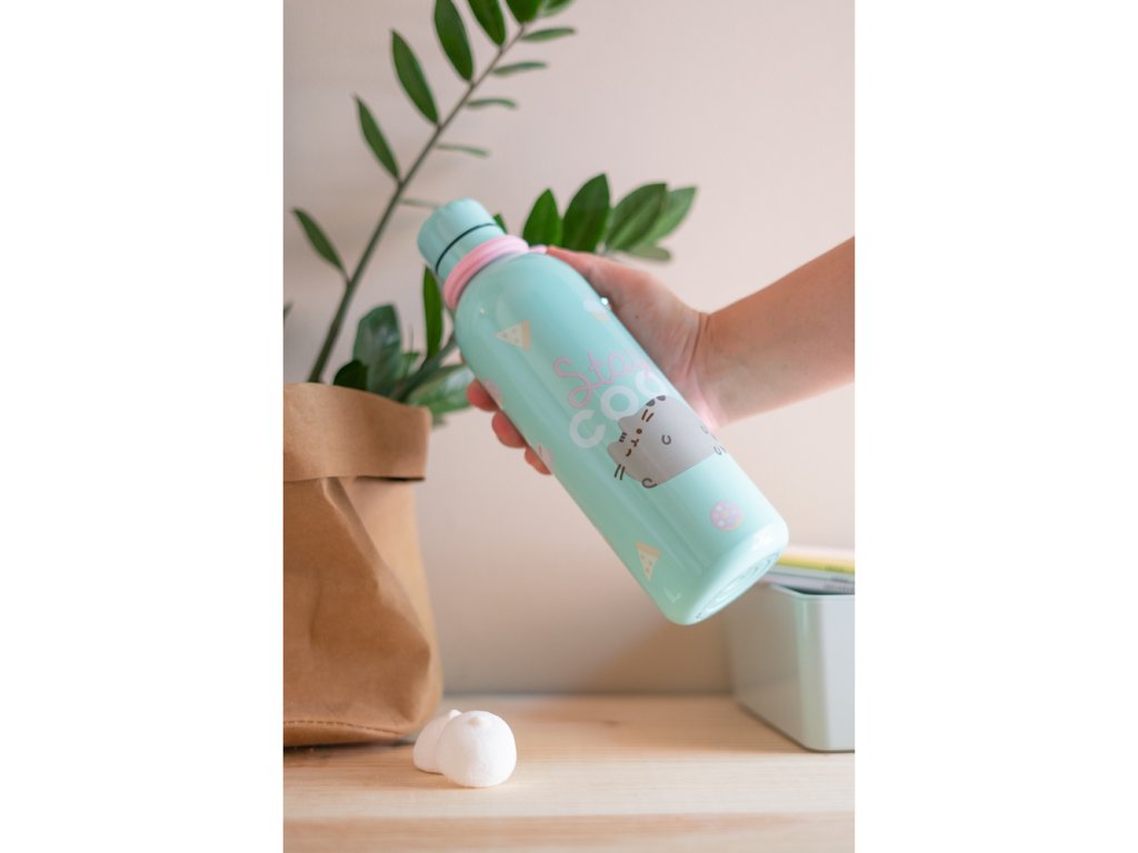 Oficiální láhev na pití a merchadise zboží z katalogu produktů s licencí komiksovou postavičkou Pusheen.