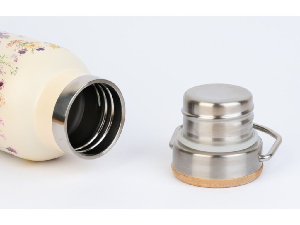 Vysoce kvalitní láhev z nerezové oceli se šroubovatelným víčkem s grafikou uměleckého díla divokých lučních květin. Láhev o objemu 500 ml má hermeticky uzavíratelný uzávěr s dřevěnou povrchovou úpravou a kovové ucho pro snadné přenášení. Dvojitá vnitřní vrstva z nerezové oceli udrží nápoje teplé až 12 hodin a studené nápoje studené až 24 hodin. Složení neobsahuje BPA, takže zaručuje bezpečnou konzumaci pro zdraví. Láhev měří 23 cm na výšku a 7 cm v průměru. Ideální dárek pro všechny fanoušky umění na studené letní osvěžení nebo zimní zahřátí.