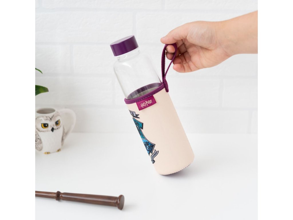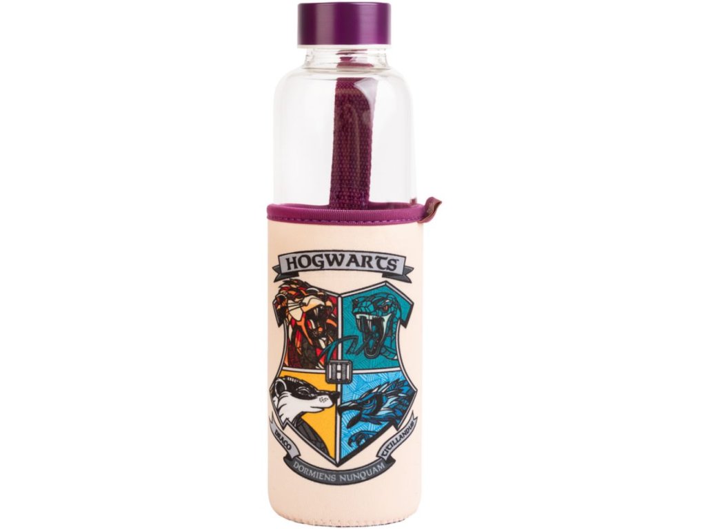 Průhledná láhev s fialovými doplňky z borosilikátového skla s motivem Erbu Bradavic (Erb of Hogwarts). Součástí balení je grafický neoprenový obal s rukojetí, který udrží tekutiny v láhvi vždy při součastné teplotě, alespoň nějakou tu chvíli. Láhev je vhodná pro všechny menší i větší fanoušky Harryho Pottera.