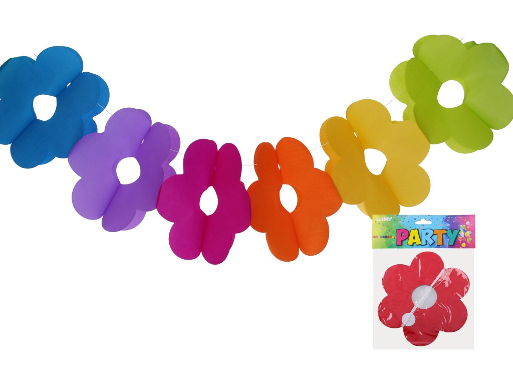 Girlanda barevná papírová 3 m, vícebarevná, vzor květina