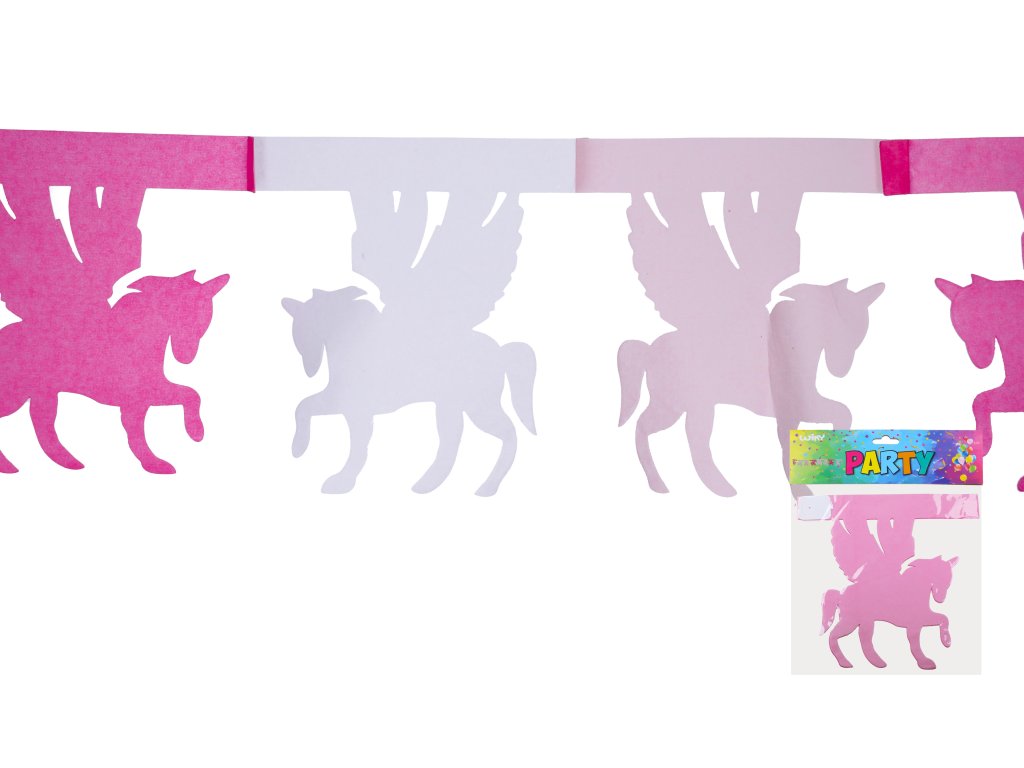 Girlanda papírová růžovobílá 3 m - vzor jednorožec