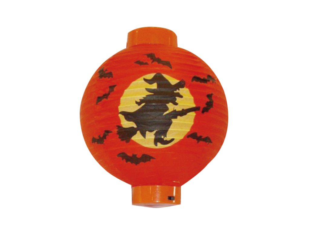 Lampion má tematický vzor s čarodějnicí a netopýry.