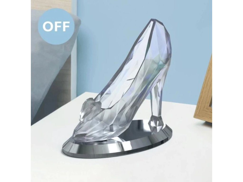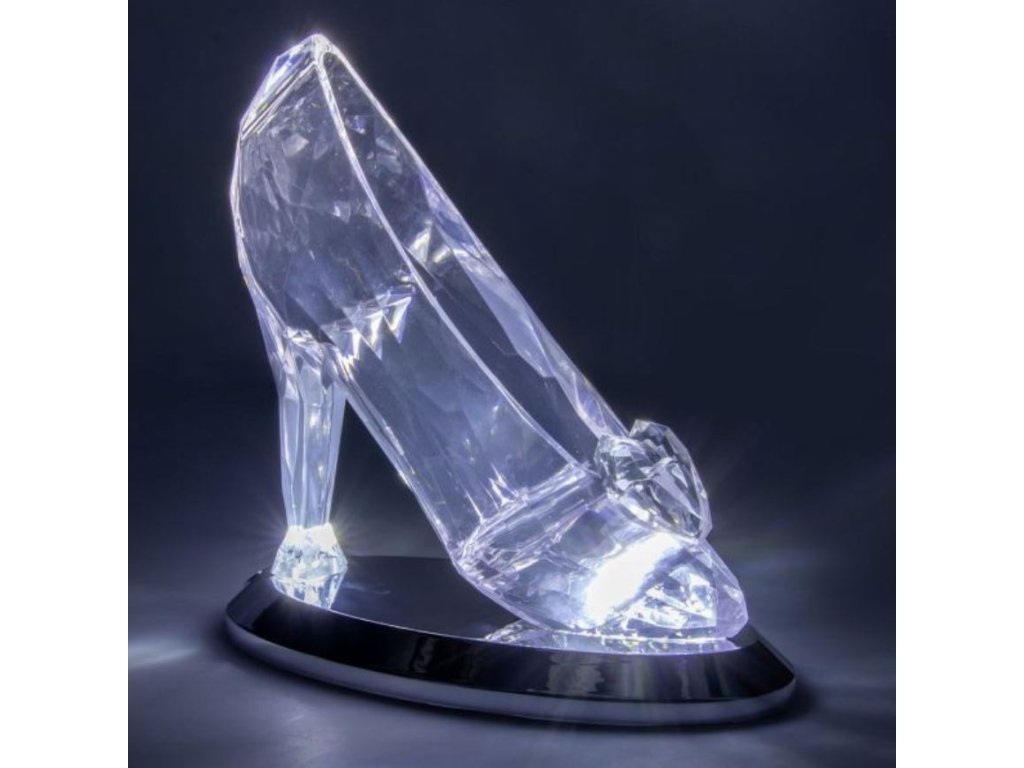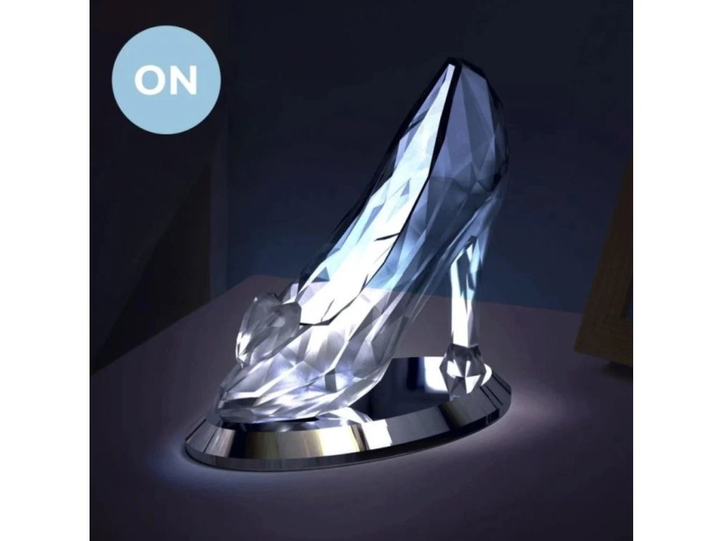 Plastová dekorativní lampička vyvedená v grafice ztraceného střevíčku od oblíbené Popelky. Svým jedinečným designem a svícením ve 2 režimech dodá pokoji ten správný šmrnc ve dne i v noci. Tato lampička udělá radost každé malé i velké princezně a fanynce této oblíbené postavy.