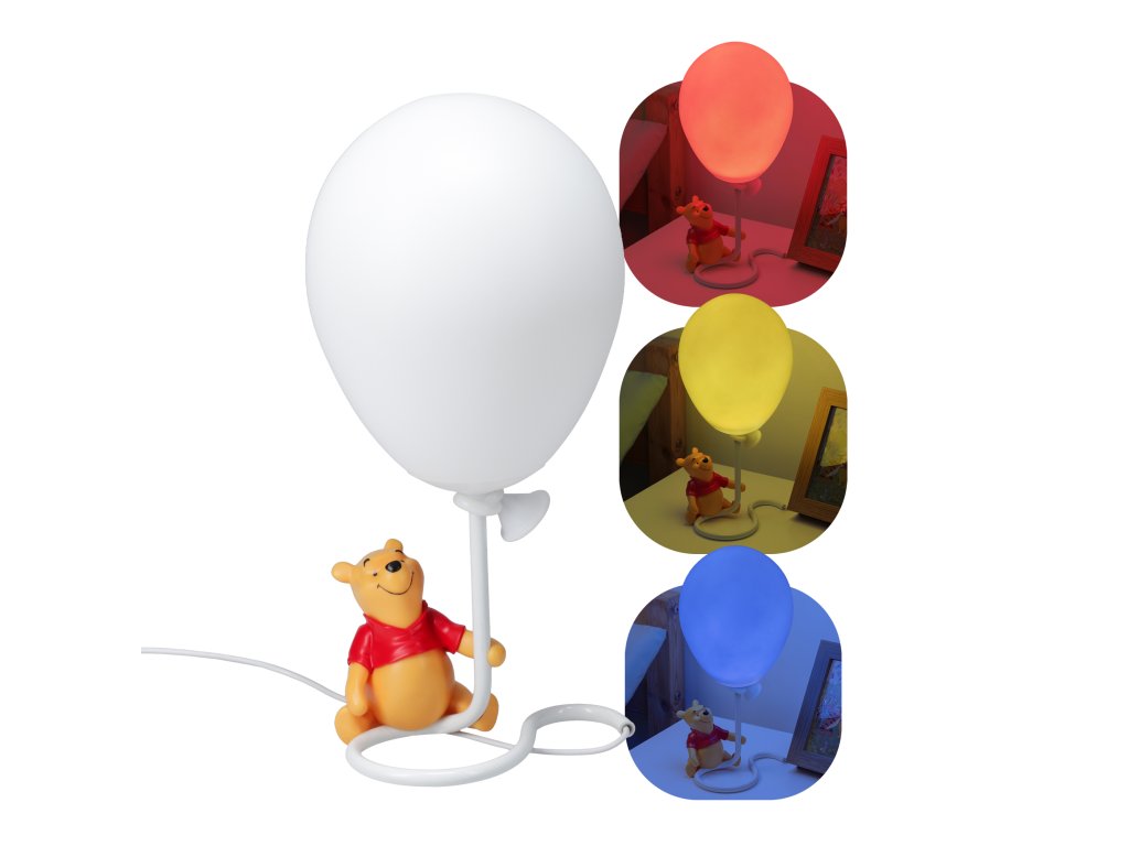 Plastová dekorativní lampička vyvedená v grafice medvídka Pú držicího balónek. Lampička s 2 módy svícení je vhodná jako noční osvětlení do jakéhokoliv dětského pokoje. Svým jedinečným designem a možností měnit barvy svícení dodá pokoji ten správný šmrnc ve dne i v noci. Tato lampička udělá radost každému fanouškovi nejen této roztomilé postavy medvídka Pú.