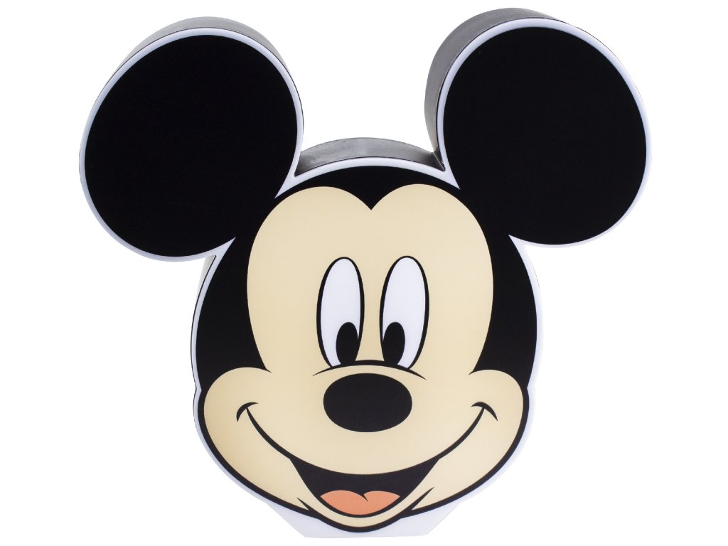 Plastová dekorativní 2D lampička vyvedená v motivu hlavy postavičky Mickey Mouse.
