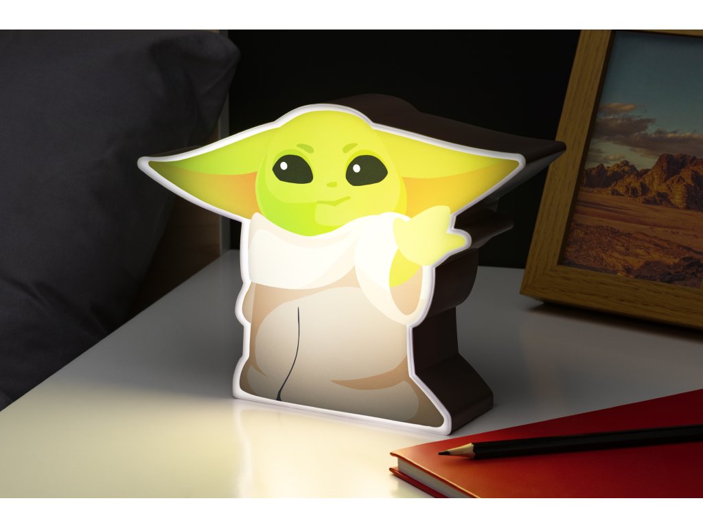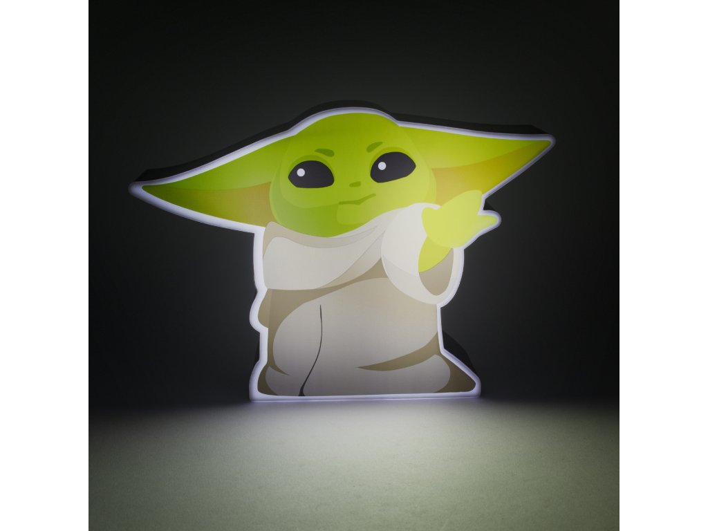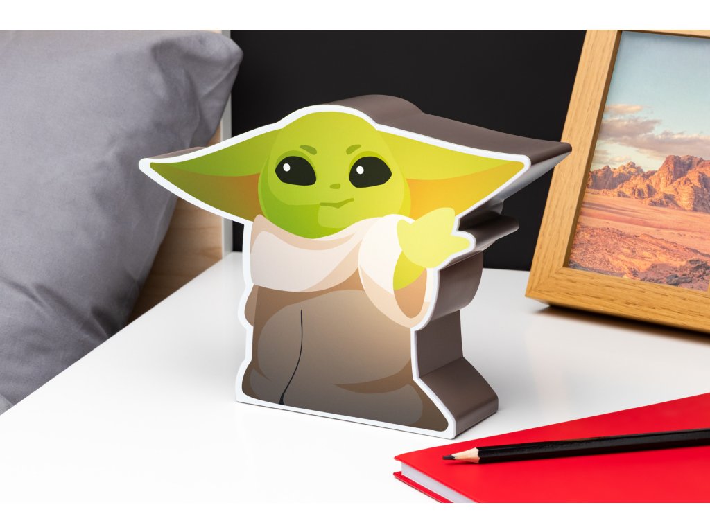 Plastová dekorativní 2D lampička vyvedená v motivu postavičky Baby Yoda.