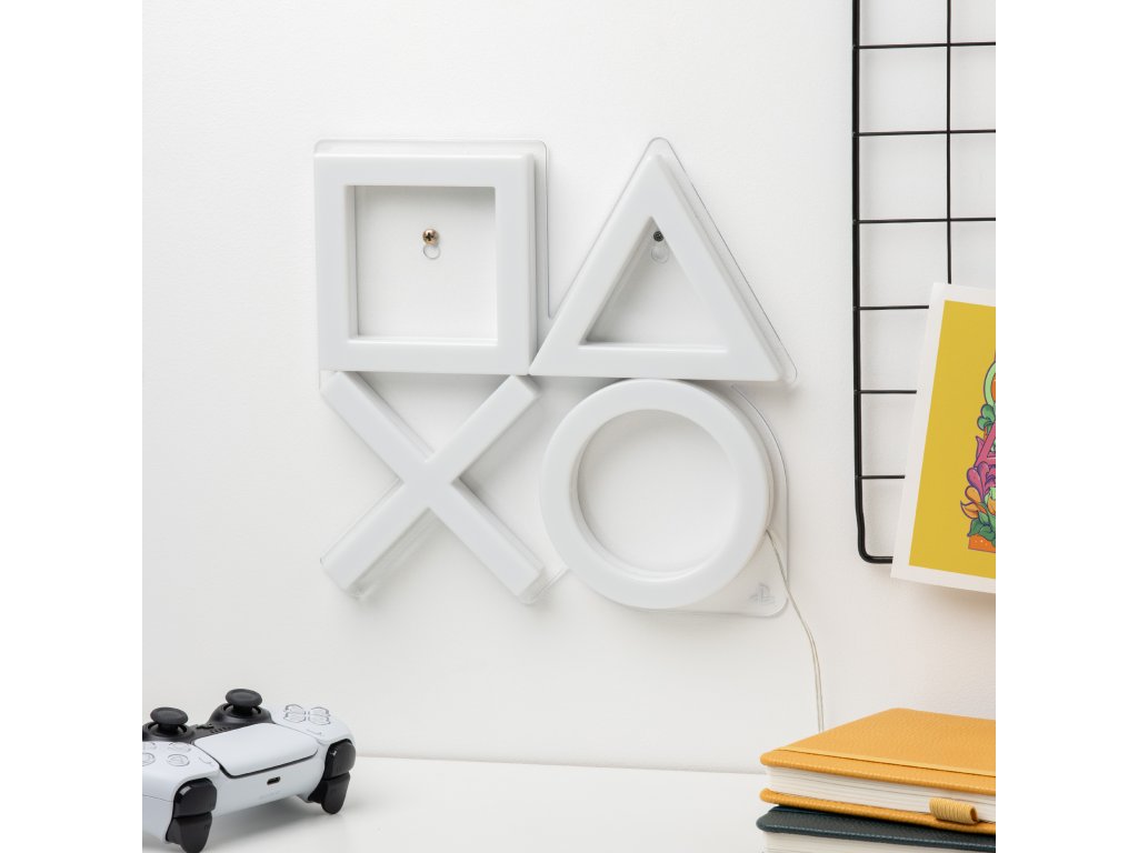 Plastová dekorativní lampička vyvedená v grafice znaků konzole PlayStation. Lampička je vhodná jako dekorativní osvětlení do jakéhokoliv pokoje. Svým jedinečným designem dodá pokoji ten správný šmrnc ve dne i v noci. Tato lampička udělá radost každému fanouškovi této herní konzole a rozhodně potěší i jako dárek.