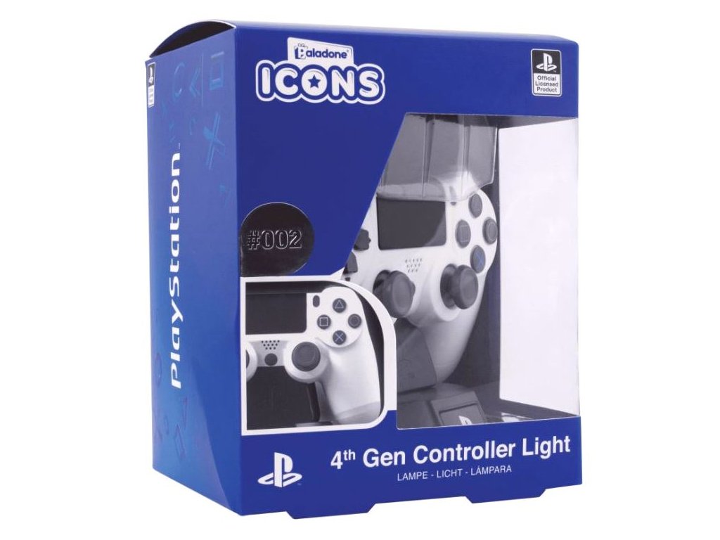 Oficiální svítící figurka a doplňkové zboží z katalogu produktů s logem a grafikou konzole PlayStation.