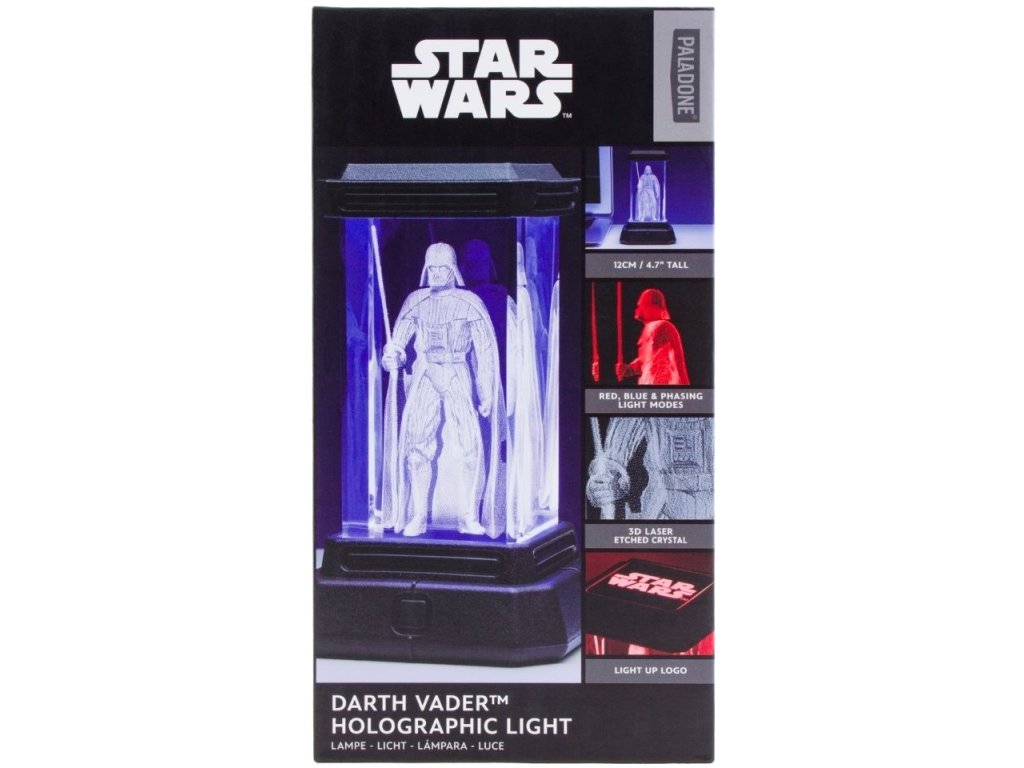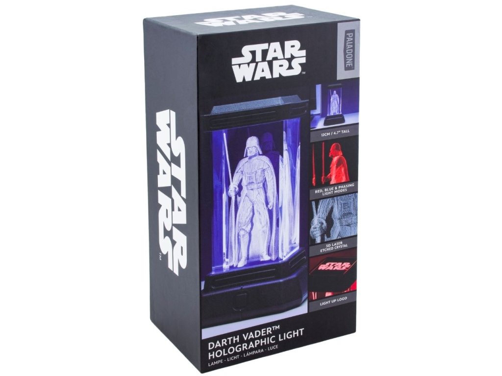 Dekorativní holografická lampa s motivem temné postavy Darth Vadera, lampa má funkci měnit barvu a je napájená pomoci dvou AAA baterií, které ovšem nejsou součastí balení.