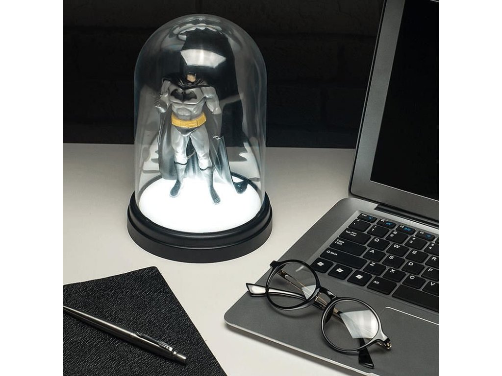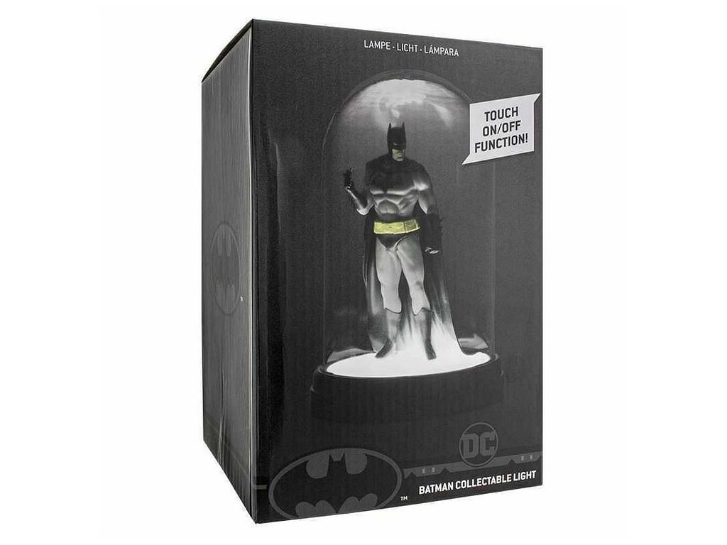 Oficiální lampa a doplňkové zboží z katalogu produktů se znakem, fotografiemi a grafikou Batmana z komiksového vydavatelství DC Comics.