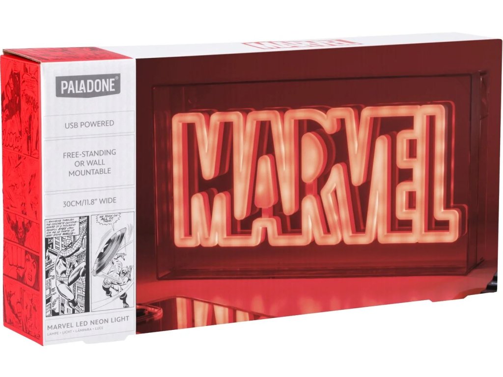 Lampa Marvel - Logo vynikne na každém dětském stolku, poličce či skříňce. Stejně tak ji lze upevnit na zeď. Vyrobená je z velmi kvalitního plastu a disponuje šířkou 30 cm. Její napájení zajistí USB kabel, který je součástí balení. Lampa Marvel nejen děti okouzlí svým designem a zaručí perfektní osvětlení.