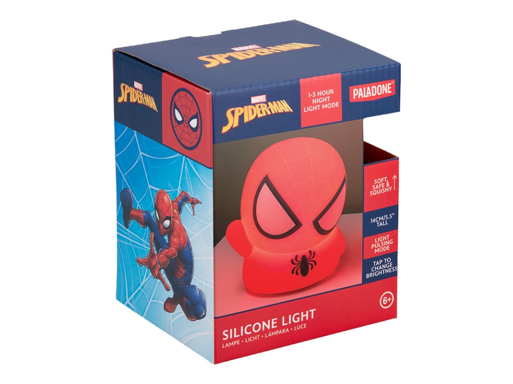 Dekorativní silikonová lampa vyvedena ve tvaru postavy oblíbeného komiksového superhriny Spider-man od společnosti Marvel. Lampička má režim pulzujícího světla a změnu jasu. Lze nastavit na svícení 1-3 hod a je tak vhodná jako noční lampička pro všechny malé fanoušky postavy Spider-man.