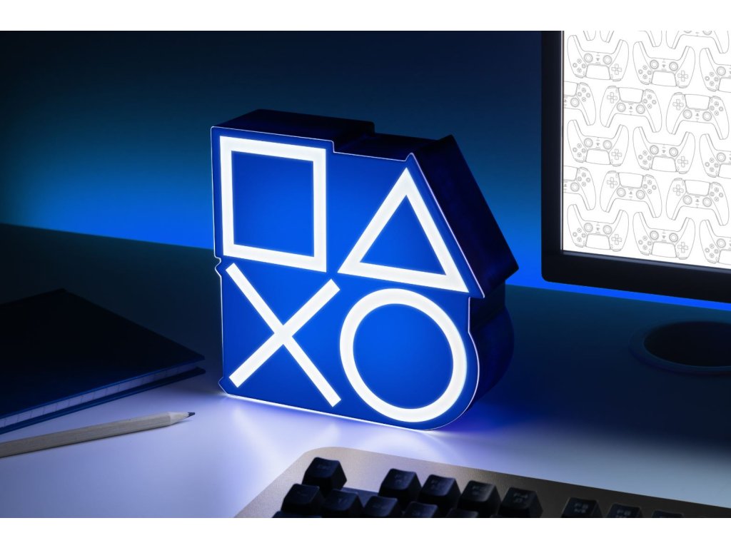 Oficiální produkt - dekorativní lampa z katalogu zboží s logem, fotografiemi a grafikou značky herních konzolí Playstation.
