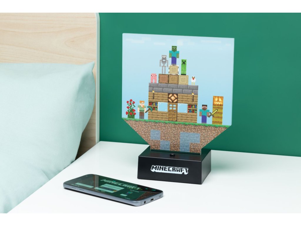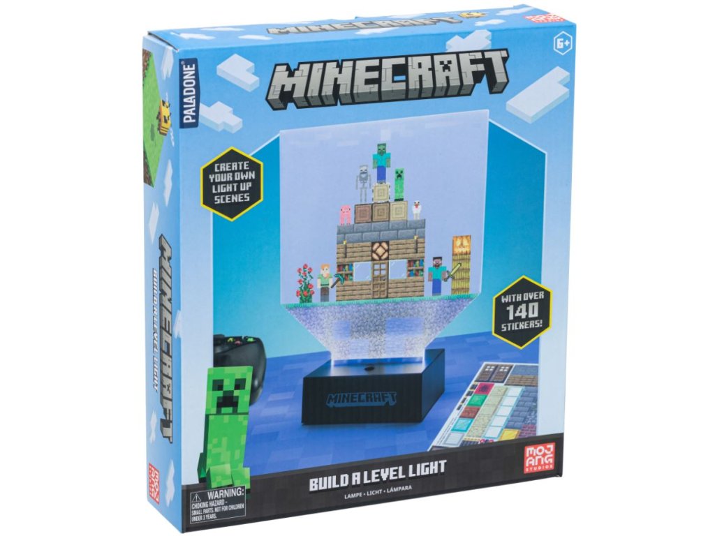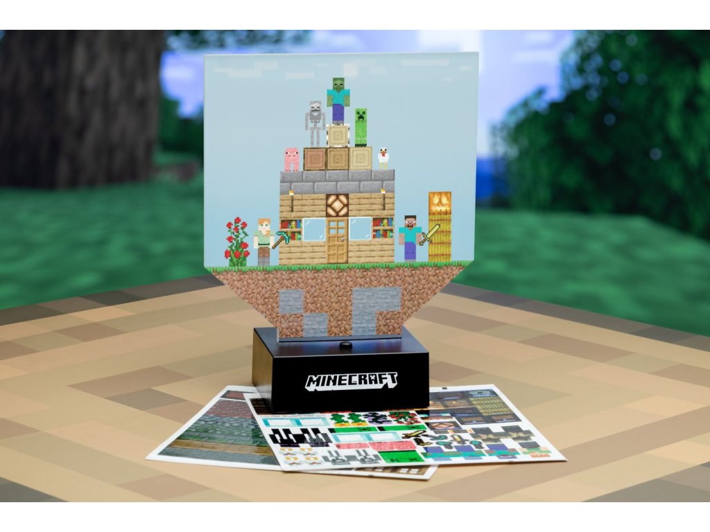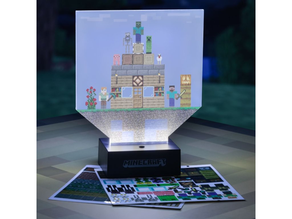 Oficiální produkt - dekorativní lampa s nálepkami na zeď s nálepkami z katalogu bytových produktů s grafikou a licencí počítačové hry Minecraft.