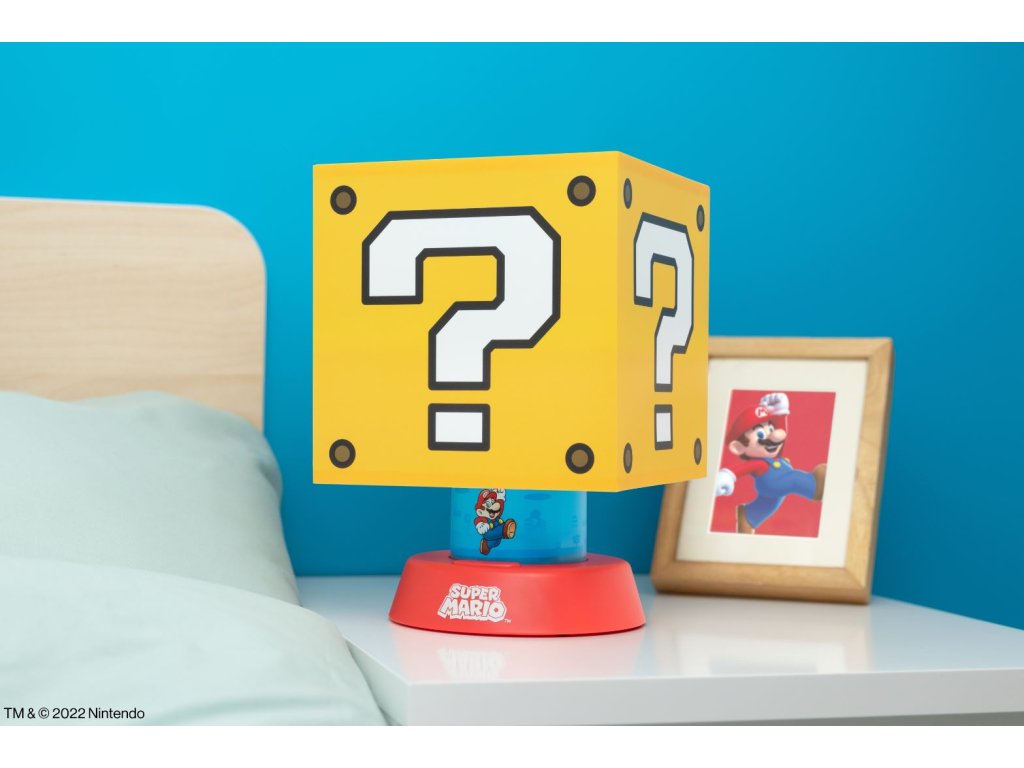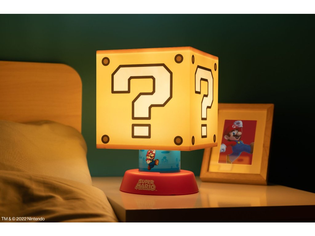 Oficiální produkt - dekorativní zvuková lampa z katalogu zboží s grafikou a licencí populární videohry Super Mario.