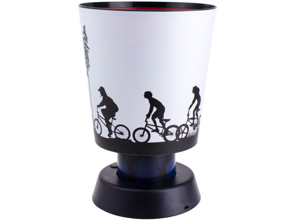 Stolní dekorativní lampa inpirovaná populárním logem: Bicycles. Lampa je vhodná pro všechny menší i větší fanoušky amerického sci-fi mysteriózního televizního seriálu Stranger Things od streamovací společnosti Netflix.