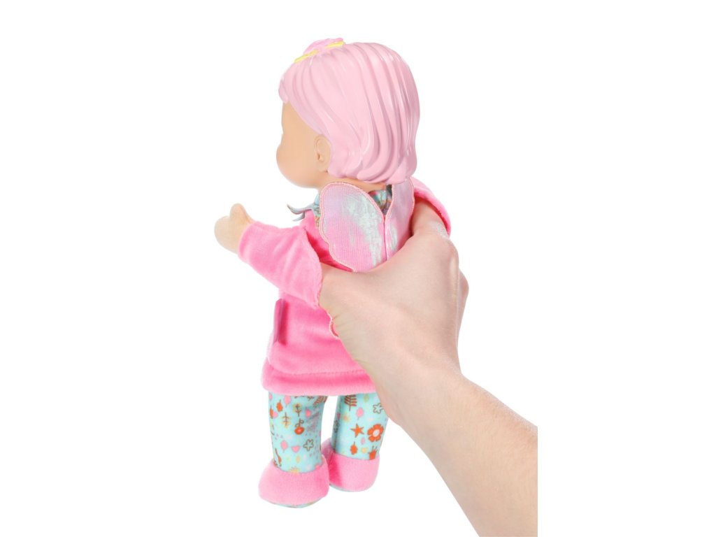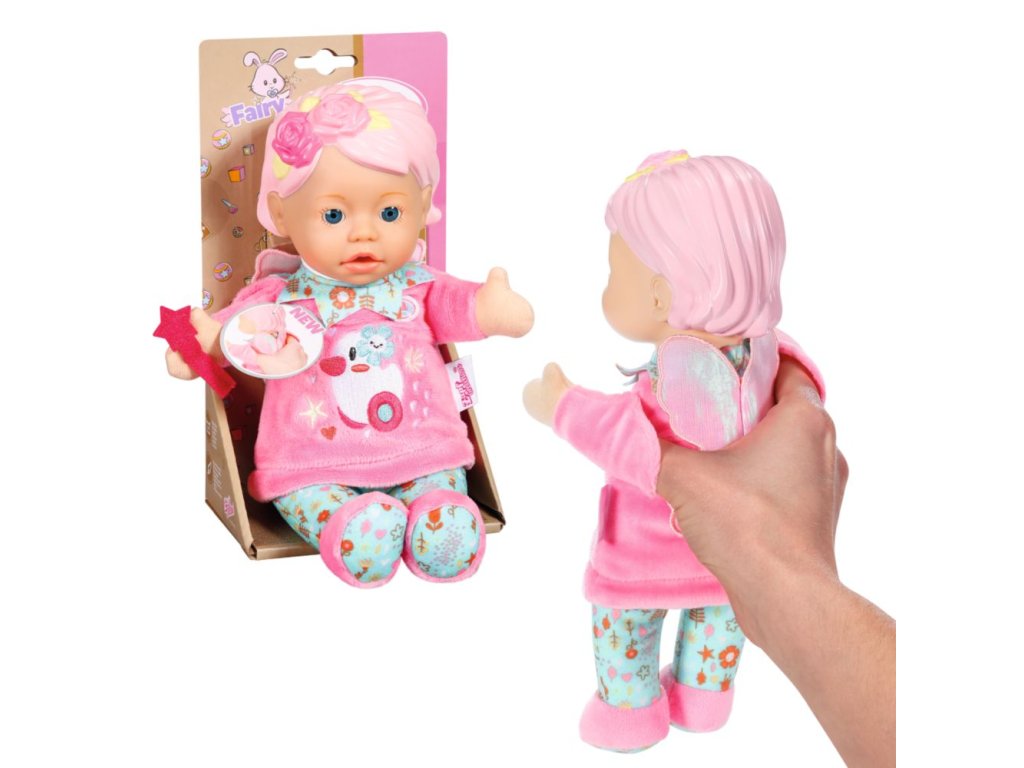 Kouzelná víla vykouzlí ty nejkrásnější pohádky u postýlky vašeho miminka. Jednoduše vsuňte prsty do kapsiček na pažích panenky a vílu rozhýbejte. Měkká vinylová hlavička je ozdobena růžičkami. Víle samozřejmě nesmí chybět ani kouzelná hůlka a křidélka. Panenka s měkkým tělíčkem je skvělou pozvánkou do světa snů a mazlení. Je ideální společnicí pro malé víly.