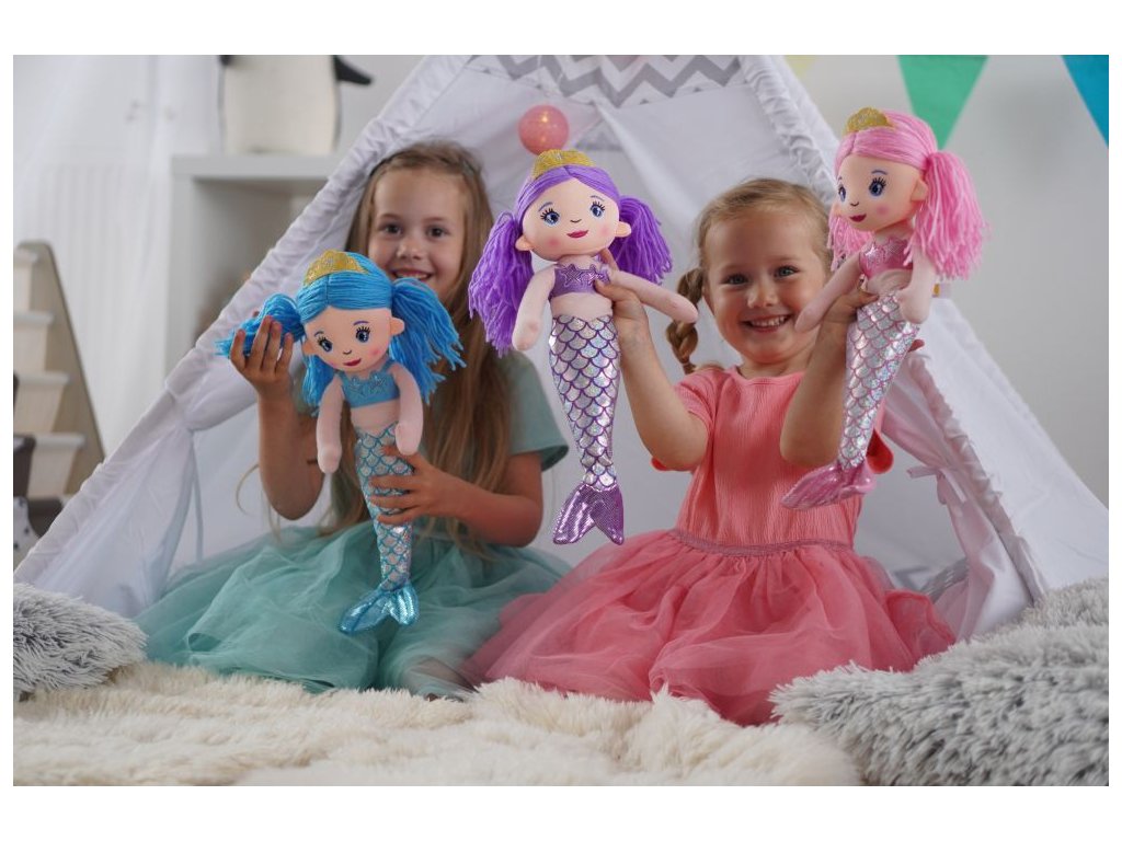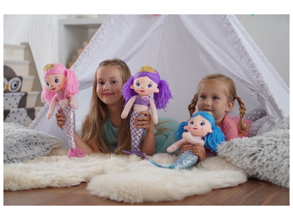 Látková mořská panna s dlouhými vlasy a korunkou. Velikost 30 cm.