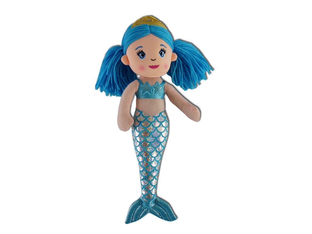 Látková mořská panna s dlouhými vlasy a korunkou. Velikost 30 cm.