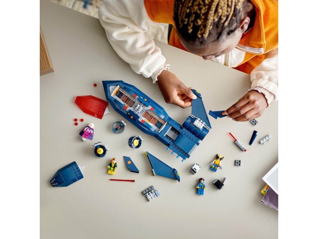 Tento úchvatný model inspirovaný tryskáčem X-Jet ze seriálu X-Men ’97 inspiruje malé stavitele k nekonečným akčním dobrodružstvím s minifigurkami Cyclopse, Rogue, Magneta a Wolverina. V sestavitelném modelu najdete dvojitý kokpit s místem pro 4 minifigurky, 2 vystřelovače na každé straně tryskáče a 2 pružinové vystřelovače pod křídly. Nechybí ani 2 odnímatelné boxy, do kterých děti uloží další dílky na vystřelování, a dlouhé Wolverinovy drápy, které lze připojit k minifigurce. Pro ještě více digitální zábavy je zde zábavná a intuitivní aplikace LEGO Builder, kde mohou stavitelé přibližovat a otáčet modely ve 3D a sledovat postup.