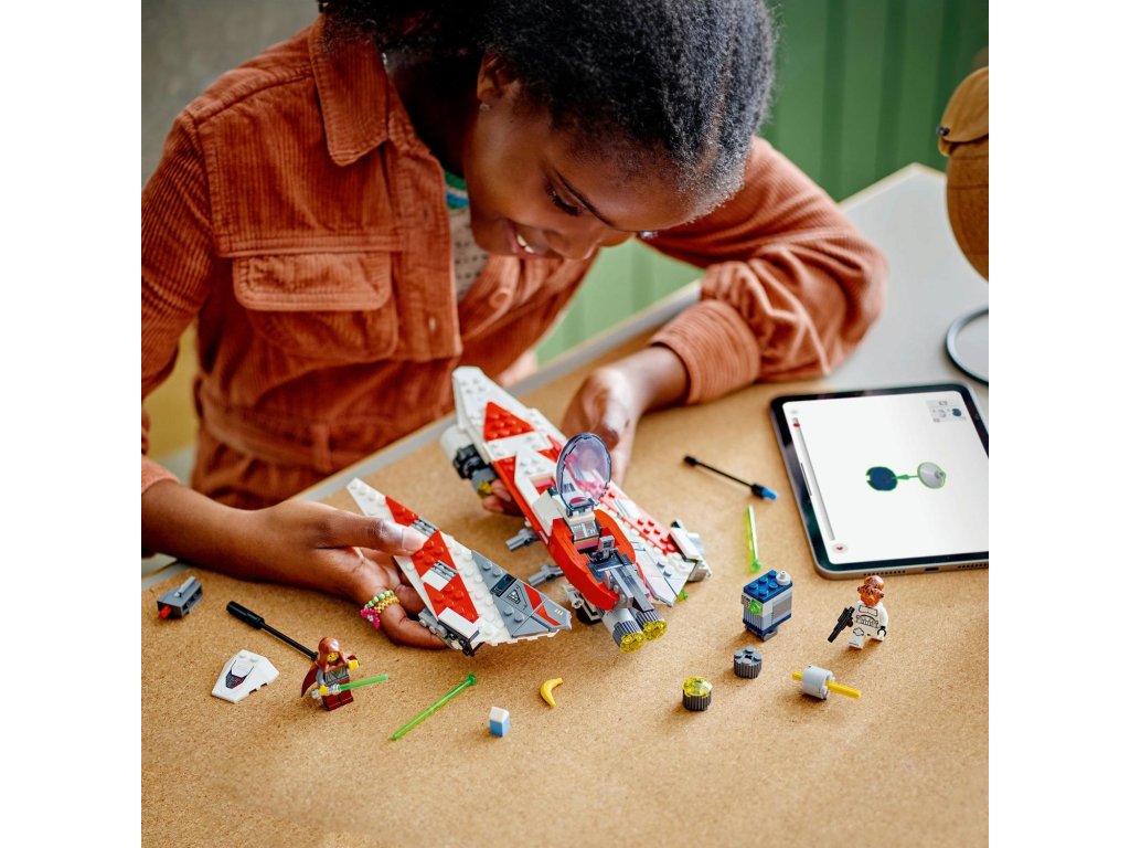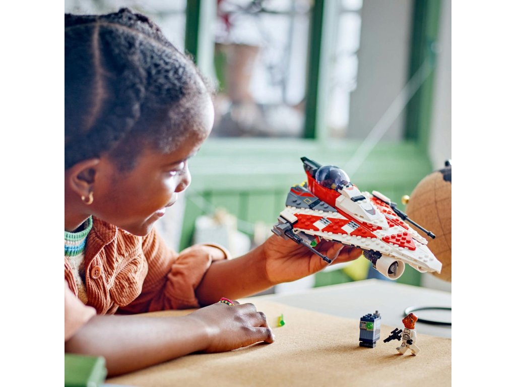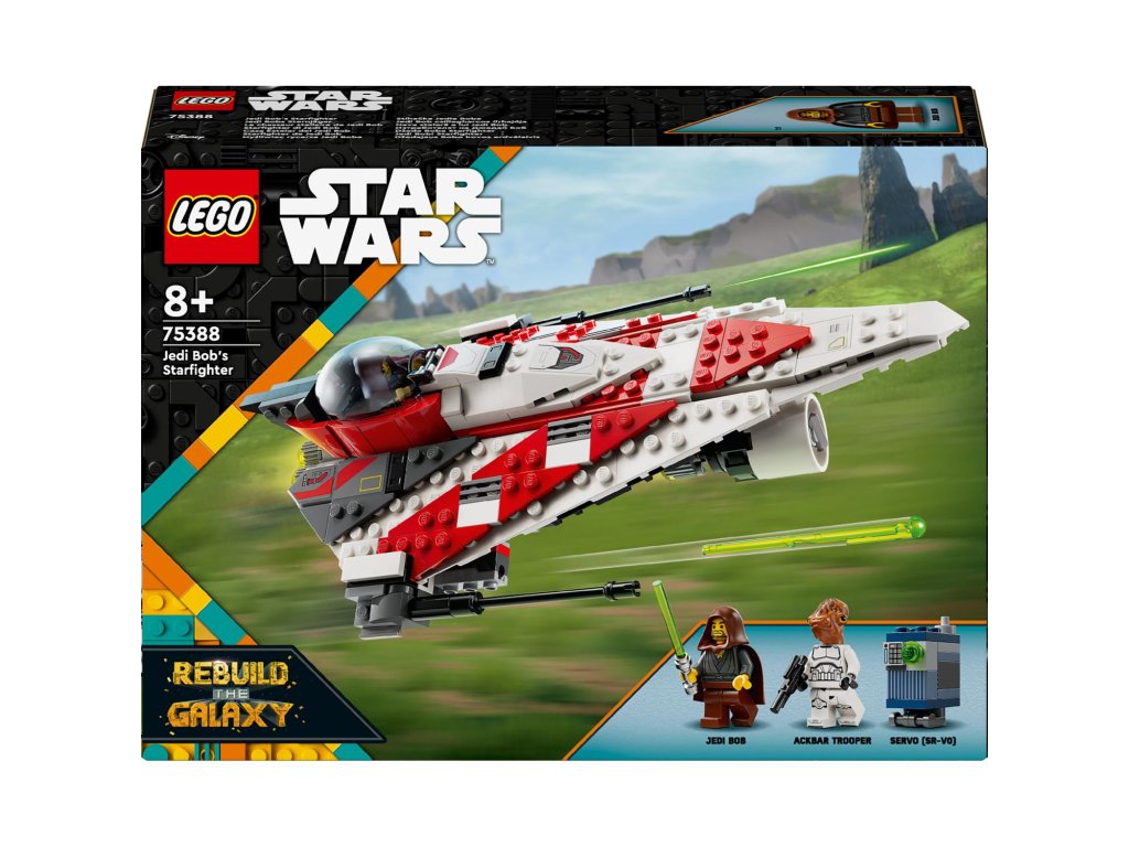 Seznamte děti s oblíbenou tajemnou postavou ze stavebnice LEGO® Star Wars™ z roku 2002 díky sadě Stíhačka Jedie Boba (75388). Tato stavebnice LEGO Star Wars, představuje skvělý narozeninový dárek pro kluky, holky a fanoušky od 8 let. Součástí je stíhačka s otevíracím kokpitem, 2 pružinovými vystřelovači a zatahovacím podvozkem. Pusťte se do strhujícího dobrodružství se 2 minifigurkami LEGO Star Wars: Jediem Bobem a vojákem Ackbarem, a k tomu navíc figurkou LEGO droida Serva (SR-V0) ze speciálu LEGO Star Wars: Rebuild the Galaxy od Disney+. Ještě více zábavy na vás čeká díky doplňků, jako je světelný meč Jedie Boba, který lze připnout k základně vesmírné lodi z kostek, krabice modrého mléka a banán, které lze uložit do nákladového prostoru. Tato stavebnice se skvěle hodí ke stavebnicím Temný Falcon (75389) a Stíhačka TIE a X-wing – kombinovaná stavebnice (75393) (prodávají se samostatně), které obsahují také vozidla a postavy ze speciálu LEGO Star Wars: Rebuild The Galaxy.