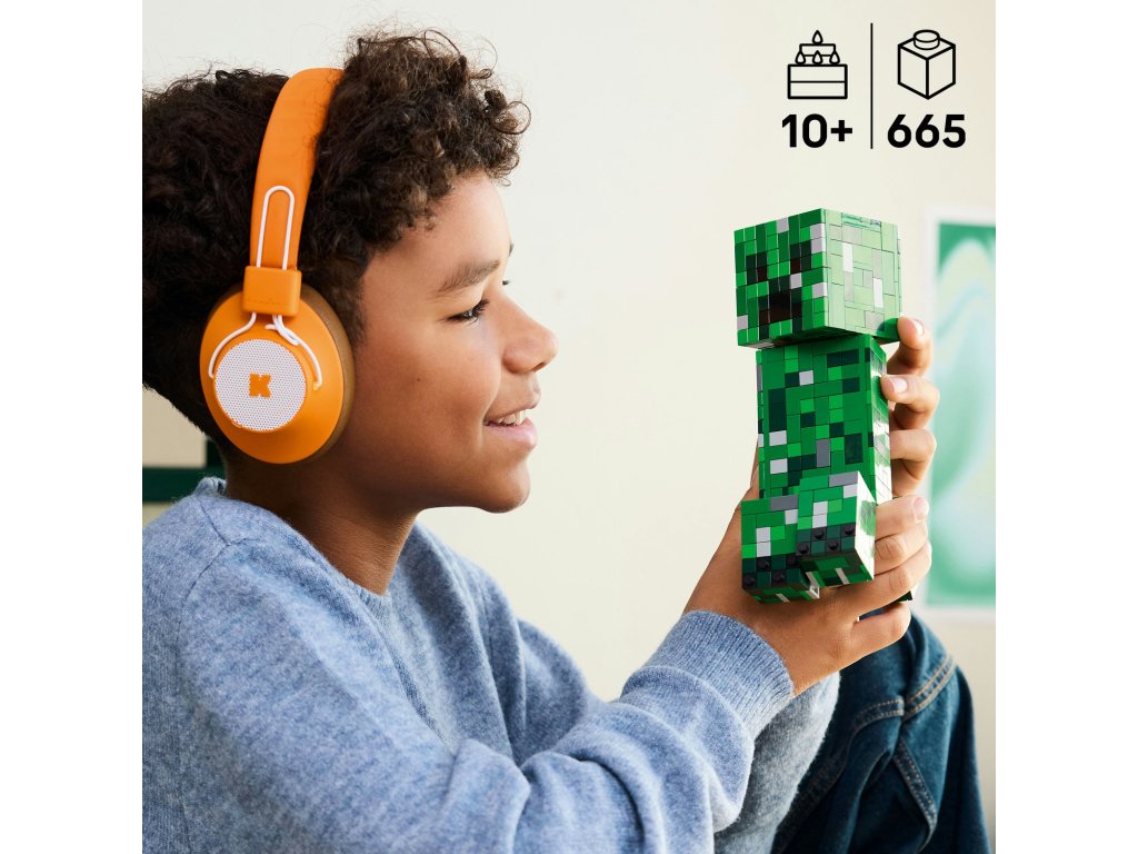 Stavebnice LEGO® Minecraft® (21276) The Creeper™ obsahuje velkou pohyblivou akční figurku, kterou si děti můžou postavit, hrát si s ní a vystavit ji všem na odiv. Tato dekorace do pokojíčku představuje ideální dárek k narozeninám, Vánocům nebo jakékoli jiné příležitosti pro děti od 10 let, které milují Minecraft. Tato sestavitelná replika Creepera ze světy hry z Minecraft měří přes 21 cm na výšku. Má 4 pohyblivé nohy a hlavu, která se pohybuje ze strany na stranu a naklání se nahoru a dolů. Přední část hlavy figurky LEGO Minecraft Creepera lze oddělit a odhalit vnitřní prostor, který obsahuje první verzi Creepera a dílek TNT. Pro ještě větší digitální zábavu stavitelé můžou přibližovat a otáčet modely ve 3D a sledovat postup pomocí zábavné a intuitivní aplikace LEGO Builder. Stavebnice obsahuje 665 dílků.