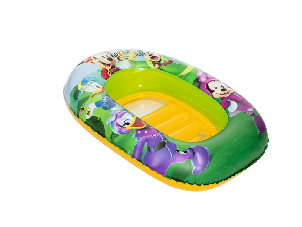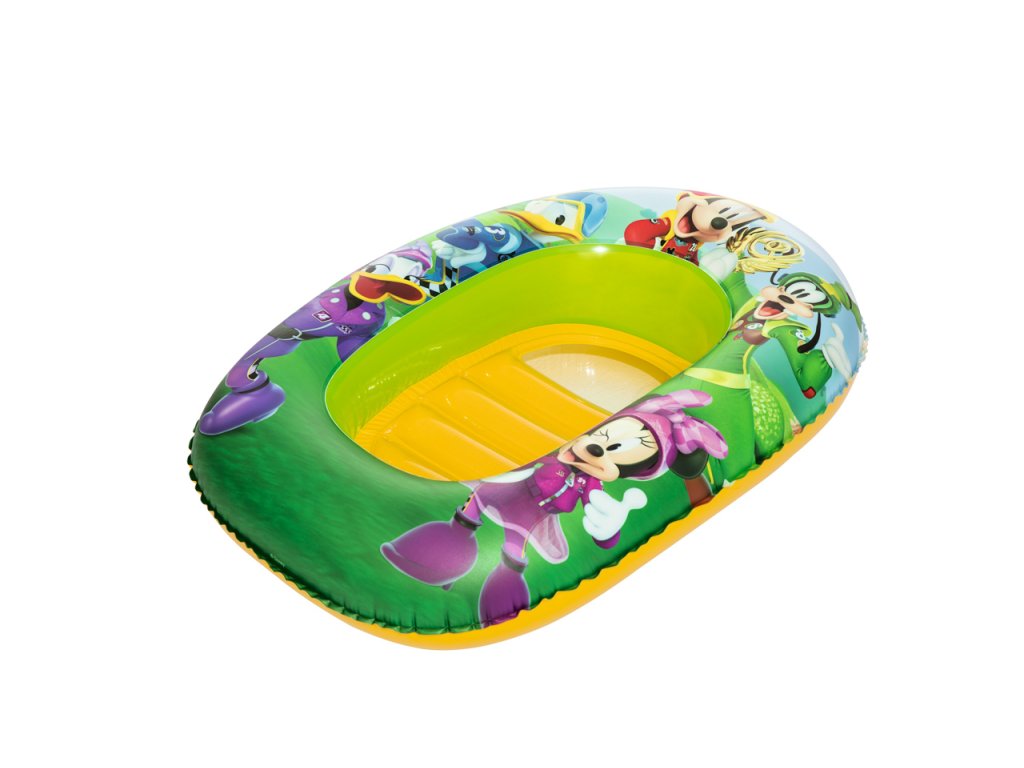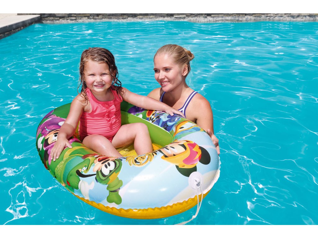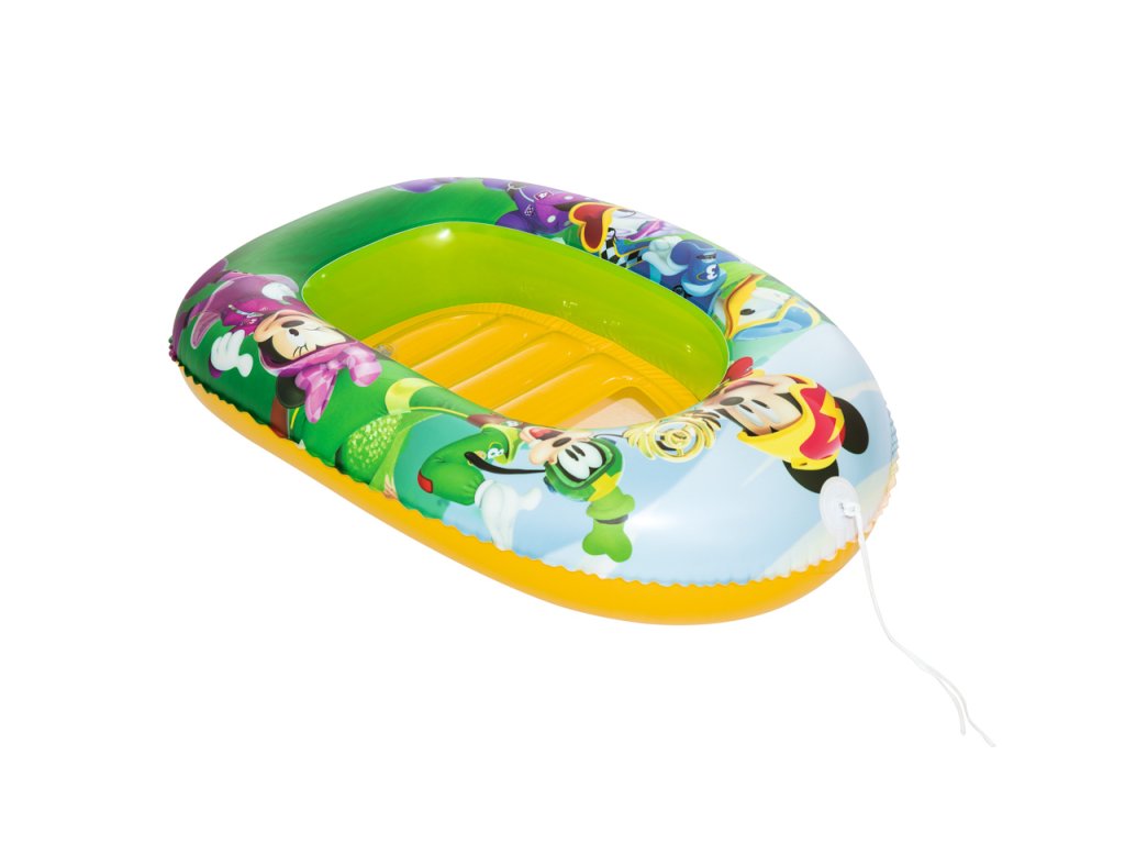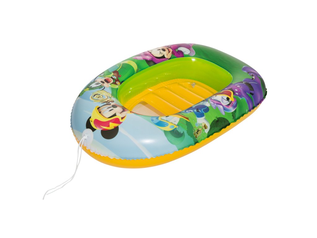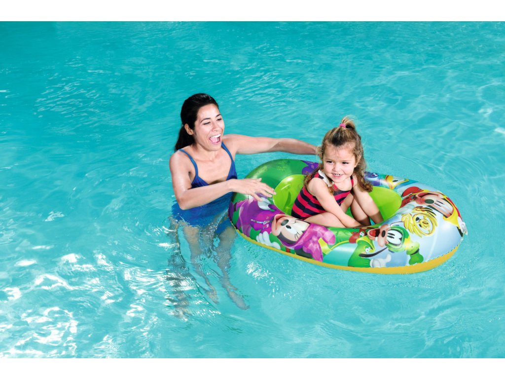 Nafukovací člun Bestway s originálním potiskem oblíbených postaviček z Mickeyho klubíku. Průhledné okénko v úrovni hlavy je navrženo tak, aby děti mohly pozorovat vše, co se děje pod hladinou. Pro pohodlné sezení je nafukovací také dno člunu. Pro možnost tažení je součástí i provaz/lanko, které je pevně uchyceno v plastovém oušku. Dopřejte svým dětem pohádkové lenošení na vodě. Člun má bezpečnostní ventily. Je vyroben z kvalitního a odolného vinylu. Rozměr: 102 x 69 cm. Obsahuje: 1 nafukovací člun. Používejte pouze pod dohledem dospělé osoby. Věk: 3-6 let