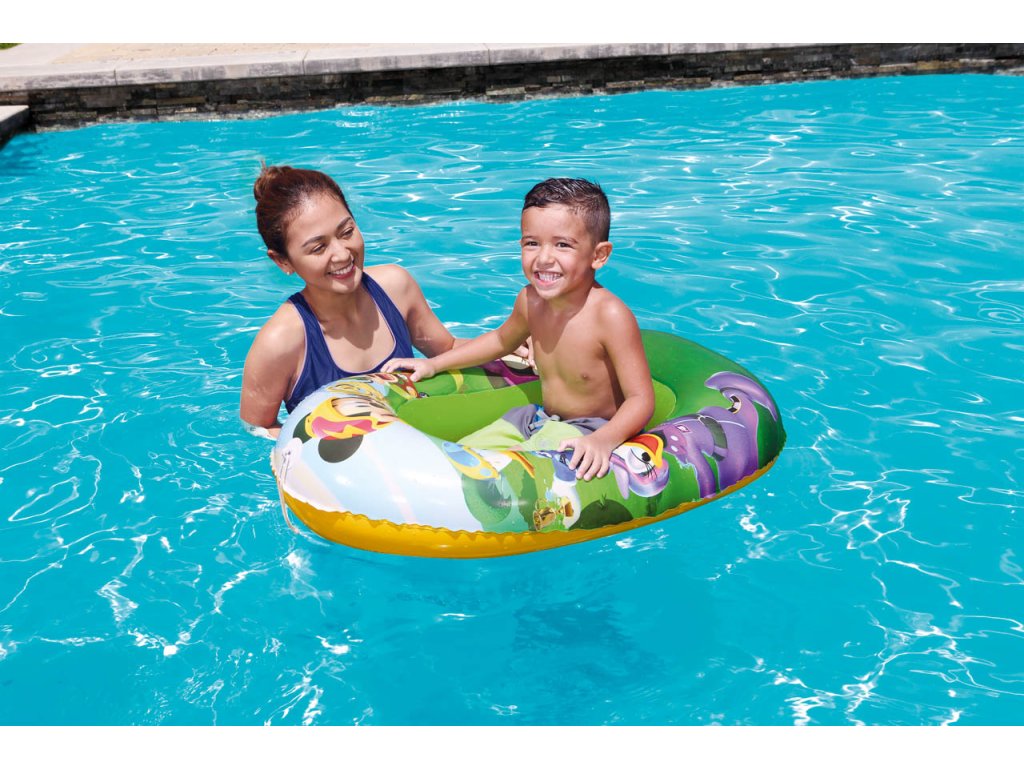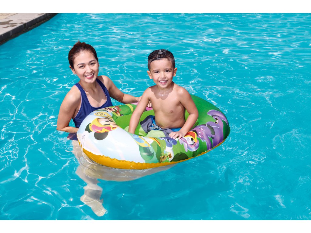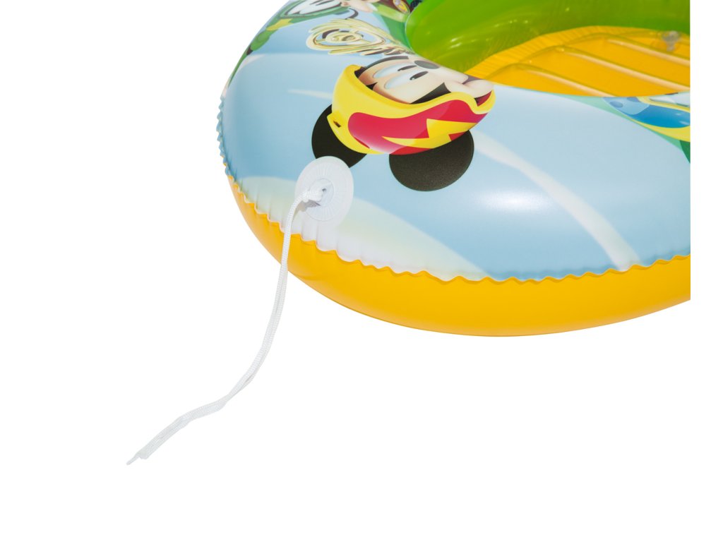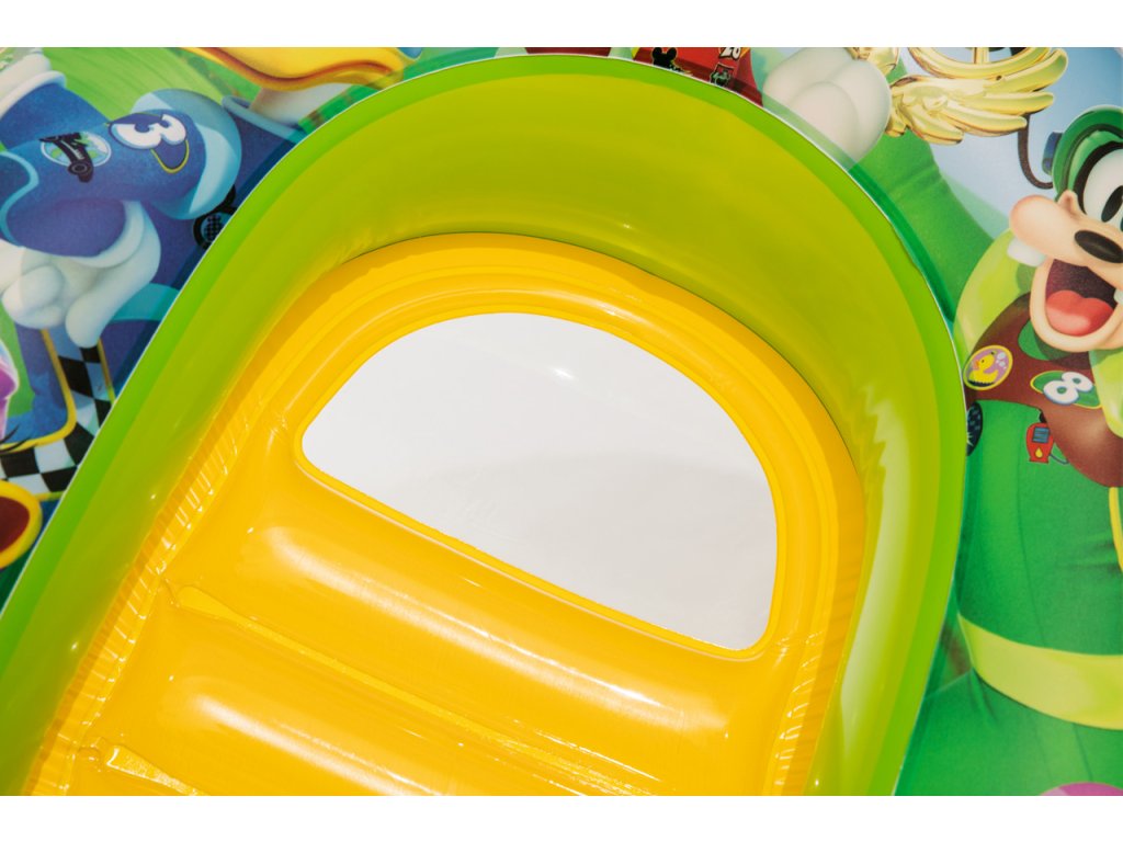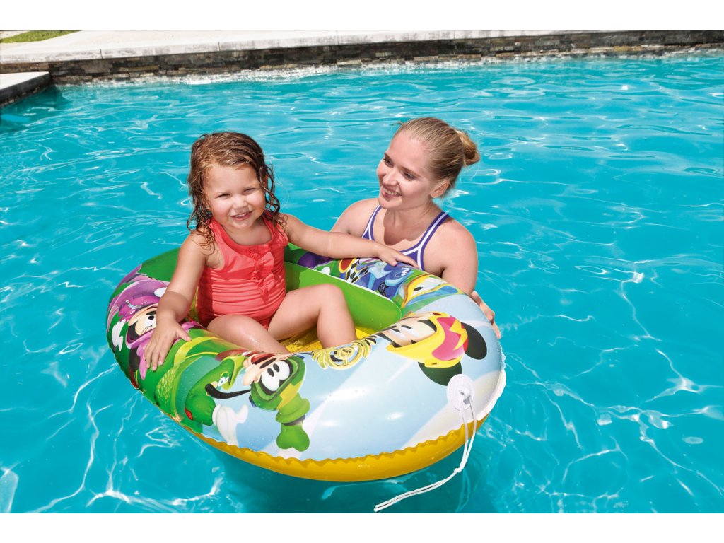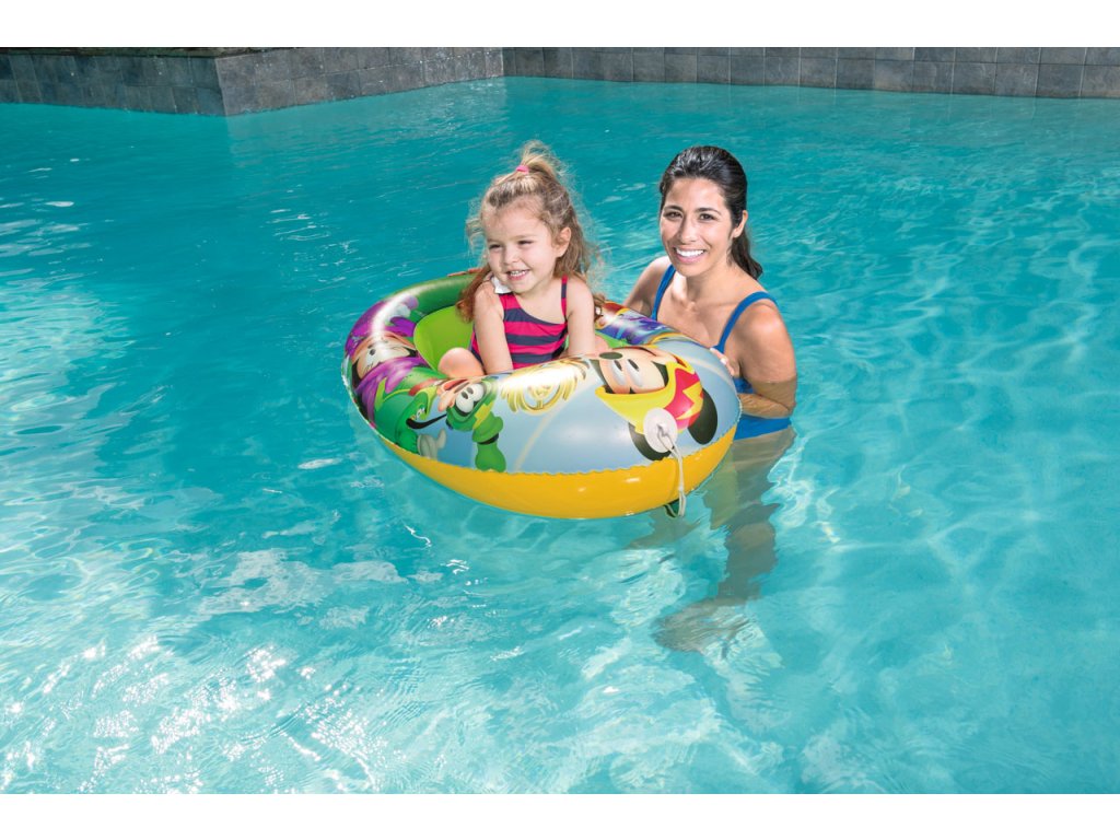 Nafukovací člun Bestway s originálním potiskem oblíbených postaviček z Mickeyho klubíku. Průhledné okénko v úrovni hlavy je navrženo tak, aby děti mohly pozorovat vše, co se děje pod hladinou. Pro pohodlné sezení je nafukovací také dno člunu. Pro možnost tažení je součástí i provaz/lanko, které je pevně uchyceno v plastovém oušku. Dopřejte svým dětem pohádkové lenošení na vodě. Člun má bezpečnostní ventily. Je vyroben z kvalitního a odolného vinylu. Rozměr: 102 x 69 cm. Obsahuje: 1 nafukovací člun. Používejte pouze pod dohledem dospělé osoby. Věk: 3-6 let