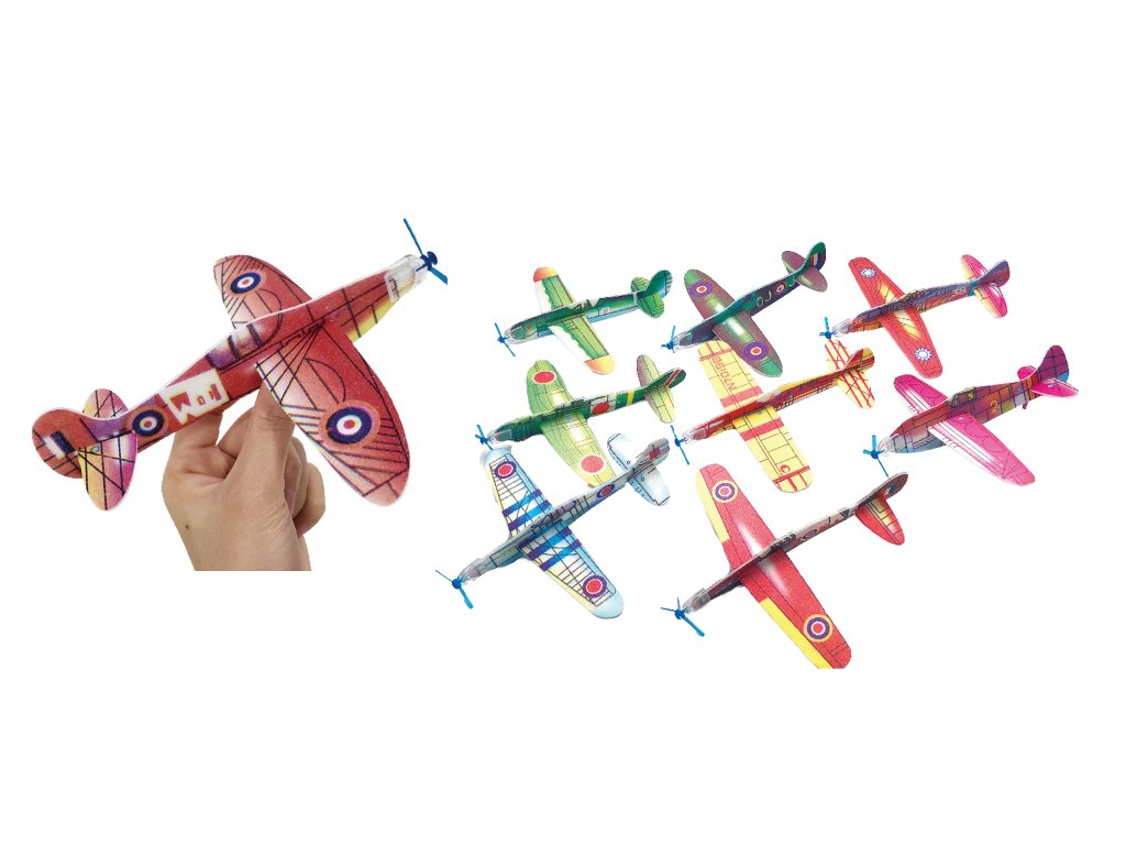Házecí letadla 2 ks. Rozměry 17x17x3,5 cm. 36 ks display box. 12 barevných variant.