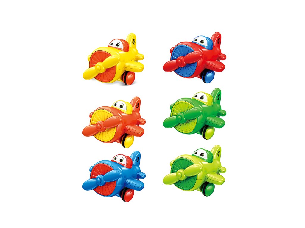 Letadlo na setrvačník. Rozměry 9,8x6,8x9,1 cm. Display box 12 ks. 6 variant.