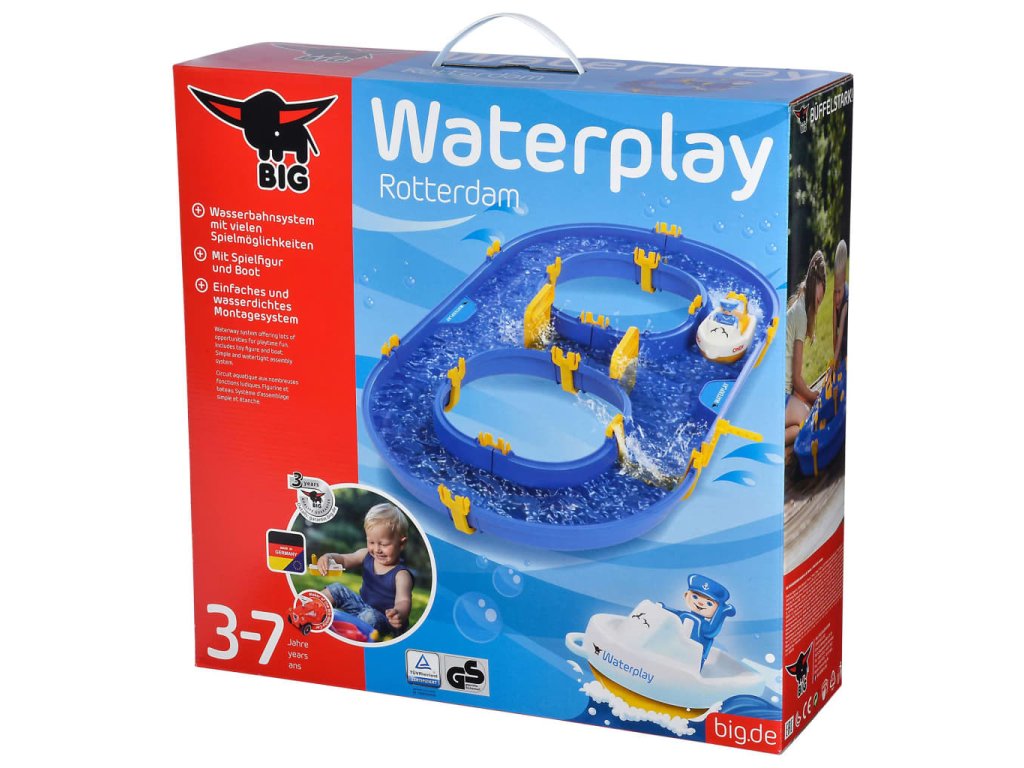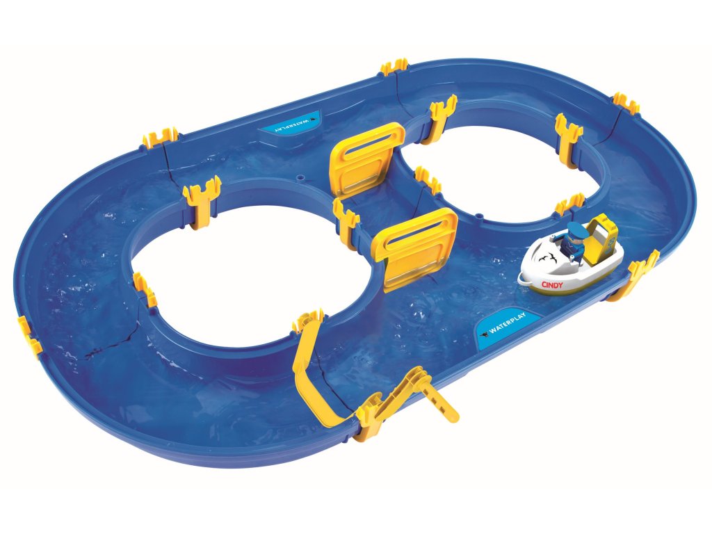 Vodní svět Hamburk. Pomocí vodních zátarasů děti ovlivňují tok vody. Součástí 1 figurka a 1 lodička. Snadná montáž. Rozměry: 90x50x9cm. Kompatibilní s Waterplay B 55101 Niagara, B 55110 Hasiči nebo s B 55109 nákladní přístav.