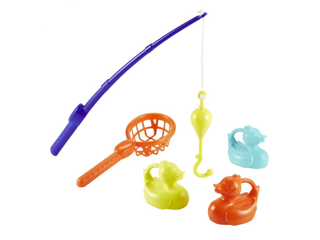 Rybářský prut s velkým hákem a sítí na chytání, včetně 3 kachniček. Rozměry: 17 x 7 x 51,5 cm.
