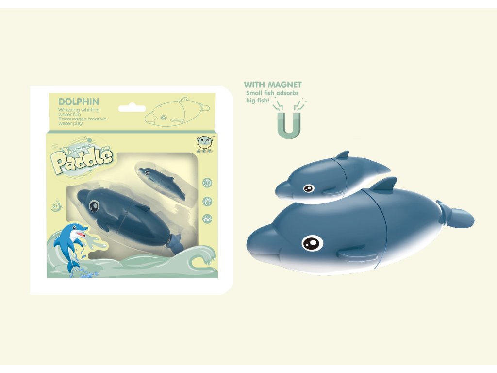 Sada maninky a miminka. Větší rybička je na baterie a plave sama. Menší na baterie není.